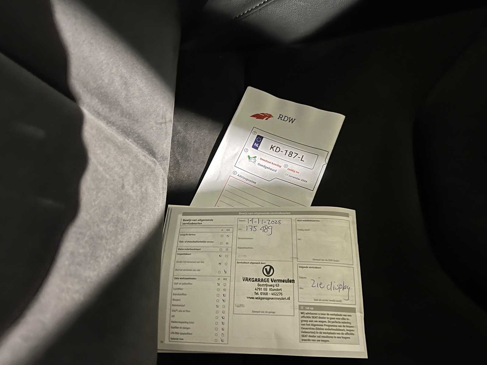 Kenteken: KD-187-L Merk: SEAT Model: Leon ST Type: 1.0 EcoTSI Style Con Afgelezen kilometerstand: 179778km Cilinderinhoud: 999cc Vermogen (kW): 85kW Brandstof: benzine Chassisnummer: VSSZZZ5FZGR025331 NAP status: Logisch Datum eerste toelating: 2017-11-17 Datum eerste toelating (NL): 2017-11-17 APK vervaldatum: 2026-11-17 Vermogen (pk): 114hp Aandrijving: voorwiel Aantal zitplaatsen: 5 Maximaal trekgewicht ongeremd: 1000kg Maximaal trekgewicht geremd: 610kg Kleur: wit Transmissie: H6 Stuurwiel: links Emissieklasse: 6 Aantal deuren: 5 Aantal sleutels: 2 Ledig gewicht: 1136kg Bruto BPM (NL): 2023€ Rest BPM: 460€ Aantal cilinders: 3 Carrosserie: Stationwagen Onderhoudshistorie: gedeeltelijk ingevuld Carfax Link: https://was.carfax.eu/v0/api/ccdid/5100016408/svc/201/vinreg/KD187L/checksum/eyJhbGciOiJIUzI1NiIsInR5cCI6IkpXVCJ9.eyJleHAiOjE3NzY3NzgxNTF9.quew60uTuAcj7HQwFaZDuQYttyh6pyEV4lOxnpW4lxQ