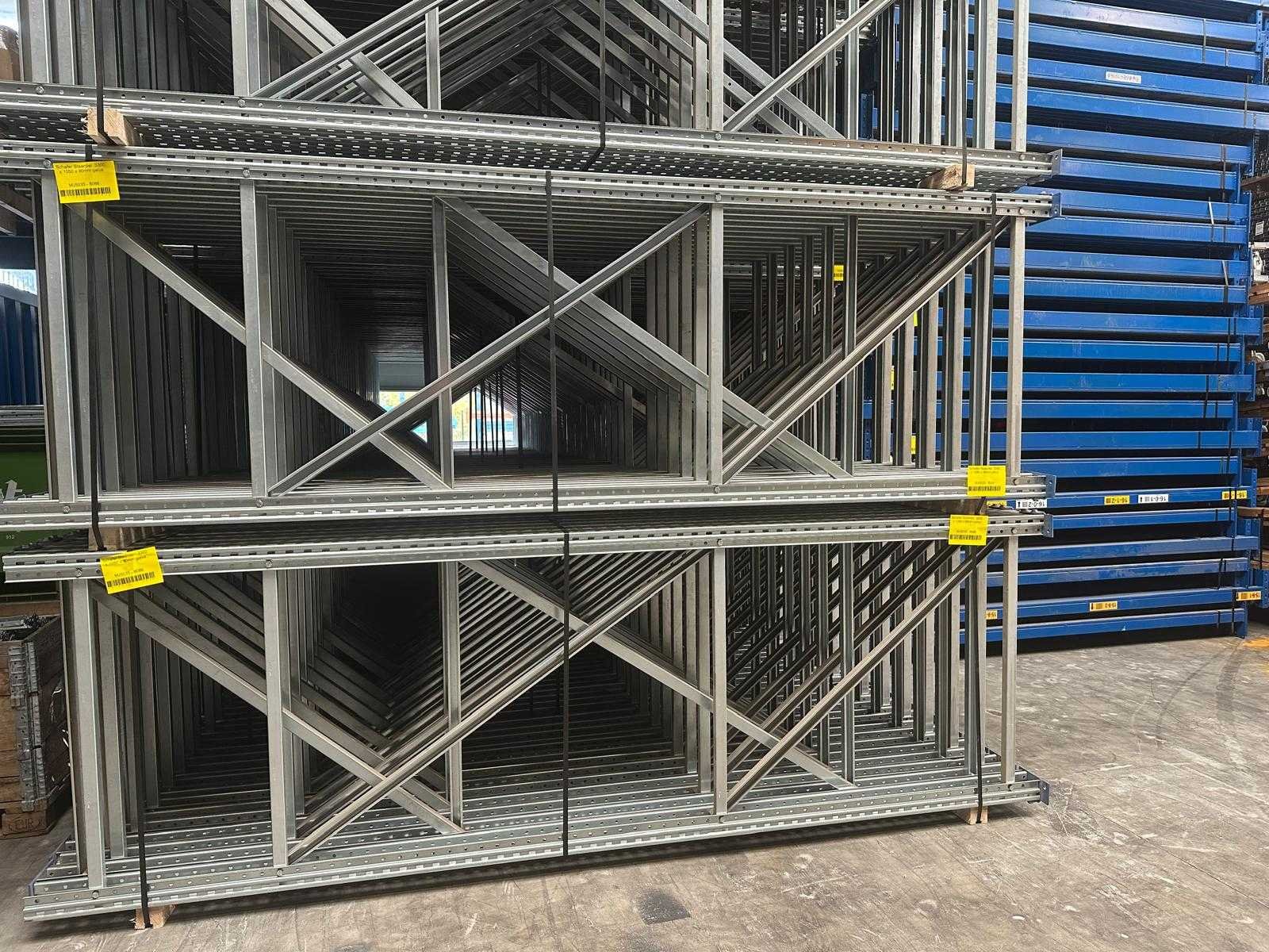 4x staander 3300x1050mm; 12 x ligger 2700mm; gebundeld; transport klaar; 8086*4 / 8087 OF 8088*12 Merk: schäfer Type: SSI Sectie afm. b: 2700mm Sectie diepte: 1050mm Sectie afm. h: 3300mm Aantal staanders: 4 Aantal liggers: 12 Demontabel: true