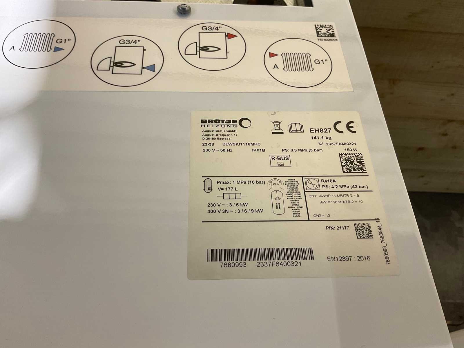 Lucht/water-warmtepomp 16kW (split compact) met verwarmingselement. Buitendeel AWHP 16 TR / Binnendeel BLWSKI1116MHC. Met ingebouwde verwarmingscircuitregeling voor een pompverwarmingscircuit met hoogrendementspomp, statusbewaking, systeemdiagnose en storingsdetectie. Weersafhankelijke regeling voor 1 verwarmingscircuit en warmwaterbereiding met kleurendisplay. Inclusief buitentemperatuursensor. Max. aanvoertemperatuur +60 °C. Minimale buitentemperatuur -15 °C. Gevuld met koelmiddel R410A. Geïntegreerde boiler 180 liter. Geïntegreerde 3-weg omschakelklep en drinkwatersensor. Kogelkraan met geïntegreerd filter ( 500 µm ). 8 liter expansievat , manometer, veiligheidsventiel en automatische ontluchter. Inclusief elektrisch verwarmingselement, vermogensregeling in 2 standen: niet combineerbaar met een tweede warmtegenerator. Model: 7695626 Product type: Lucht-water warmtepomp Gewicht: 268,10kg