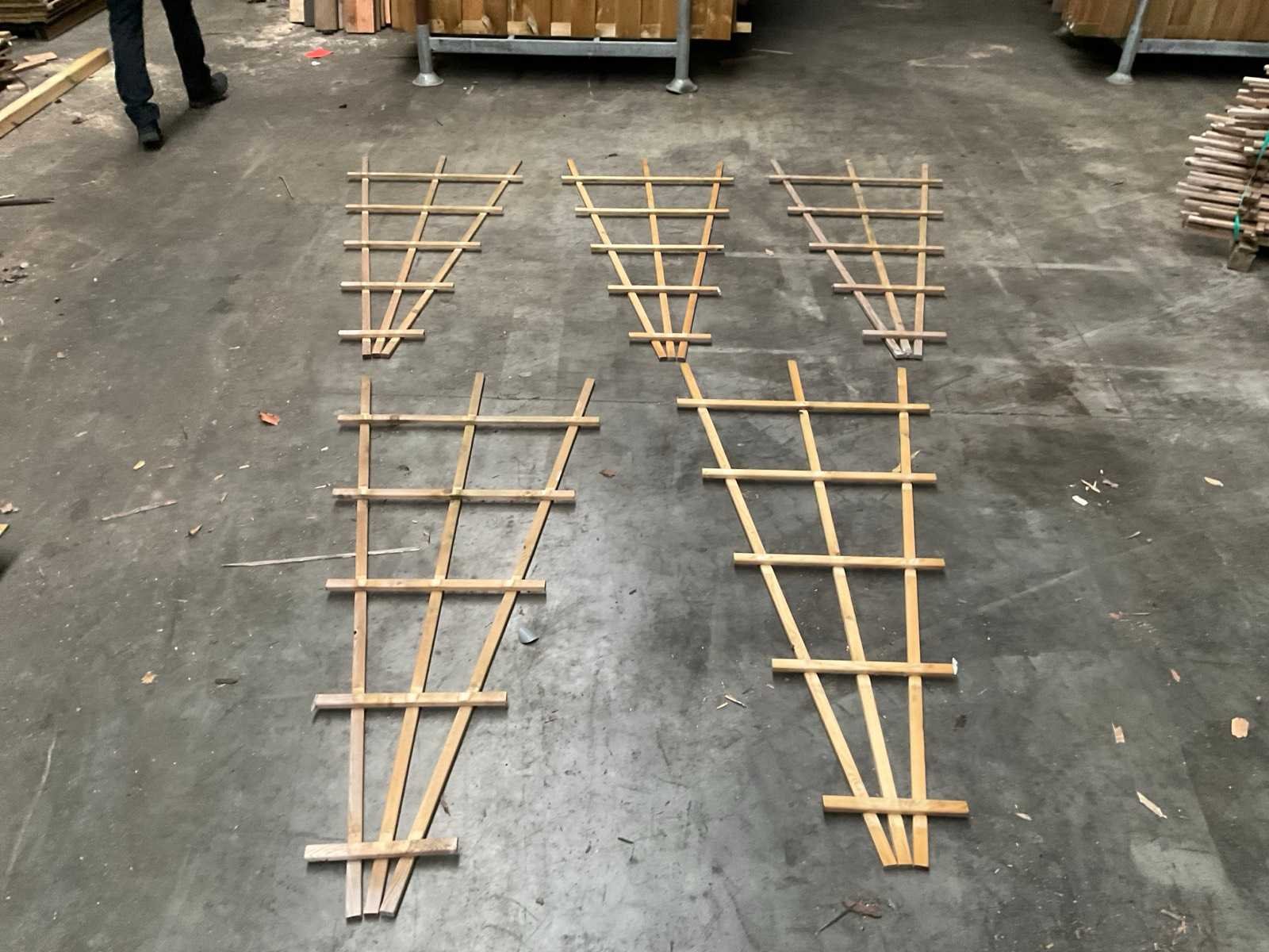 Geïmpregneerd vuren 5 stuks. Nieuw product licht vergrijsd Merk: Hillhout Model: Klimplantenrek Gewicht: 30kg Breedte: 80cm Hoogte: 180cm Materiaal: Grenen geimpregneerd