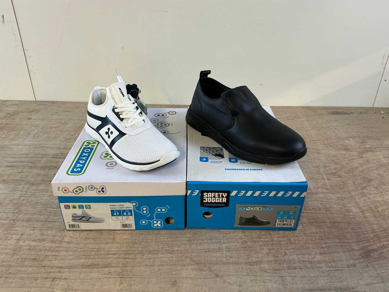 Let op: Deze kavel betreft 1 doos met Oxypas Luca schoenen met maat 41 en 1 doos met Safety Jogger Hanley O2 SLP schoenen met maat 43.