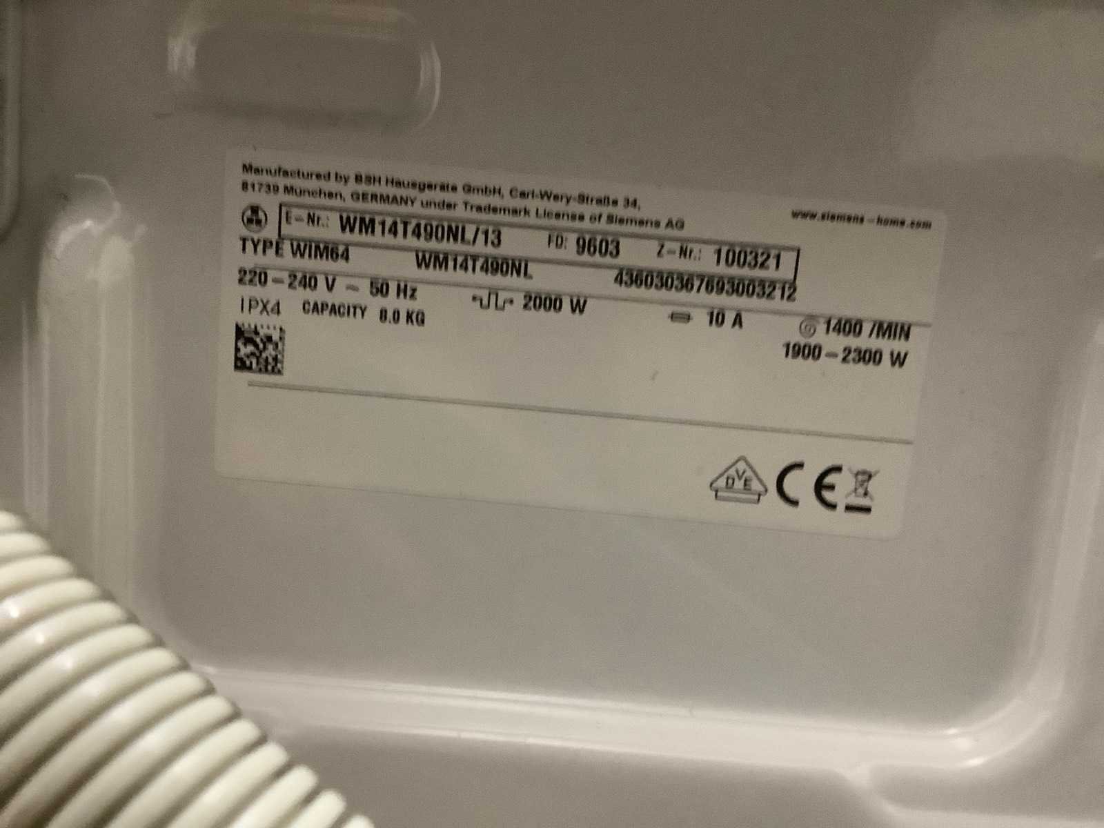 Deze kavel is afkomstig van een van de grootste retailers van Nederland en betreft een retourmodel wasmachine. Het apparaat is getest en werkend bevonden. Het product kan kort in gebruik zijn geweest en daardoor lichte gebruikssporen bevatten. Wij adviseren u om de foto’s zorgvuldig te bekijken om een goed beeld te krijgen van de huidige staat en eventuele cosmetische schade. Door te bieden op dit kavel draagt u bij aan een duurzamere e-commerce industrie: u geeft dit product een tweede leven en helpt mee aan het verminderen van e-waste en CO₂-uitstoot. Merk: SIEMENS Model: IQ500 WM14T490NL Product type: WIM64 Spanning: 220V Vermogen: 2000W
