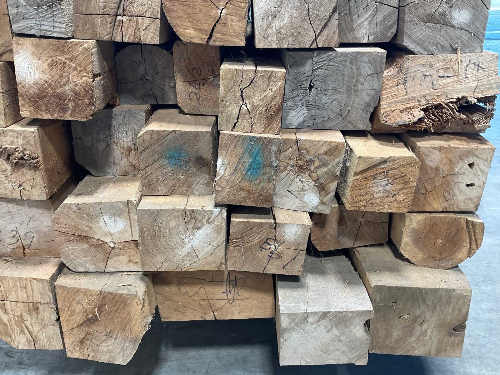 Teakhouten balken gedroogd, 240 x diverse diktes van 8 tot 18 cm dik. 37 stuks, exclusief bok!