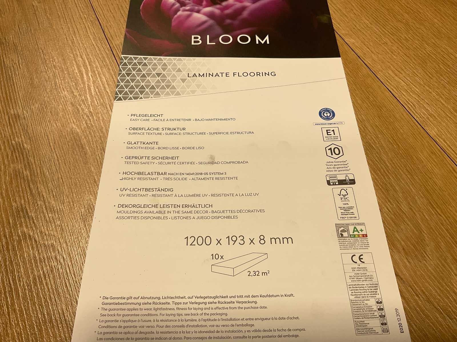 Bloom Acacia Bruin laminaat van het merk Purity à 2,32m² per pak = Totaal van 2,32m². Merk: Purity Model: Bloom Product type: Laminaatvloer Oppervlakte: 2,32m² Geschikt voor vloerverwarming: true V-groef: true Aantal m² per verpakking: 2,32m² Kleur: Acacia Bruin Gewicht: 15,8kg Lengte: 1200mm Breedte: 193mm Hoogte: 8mm Materiaal: HDF