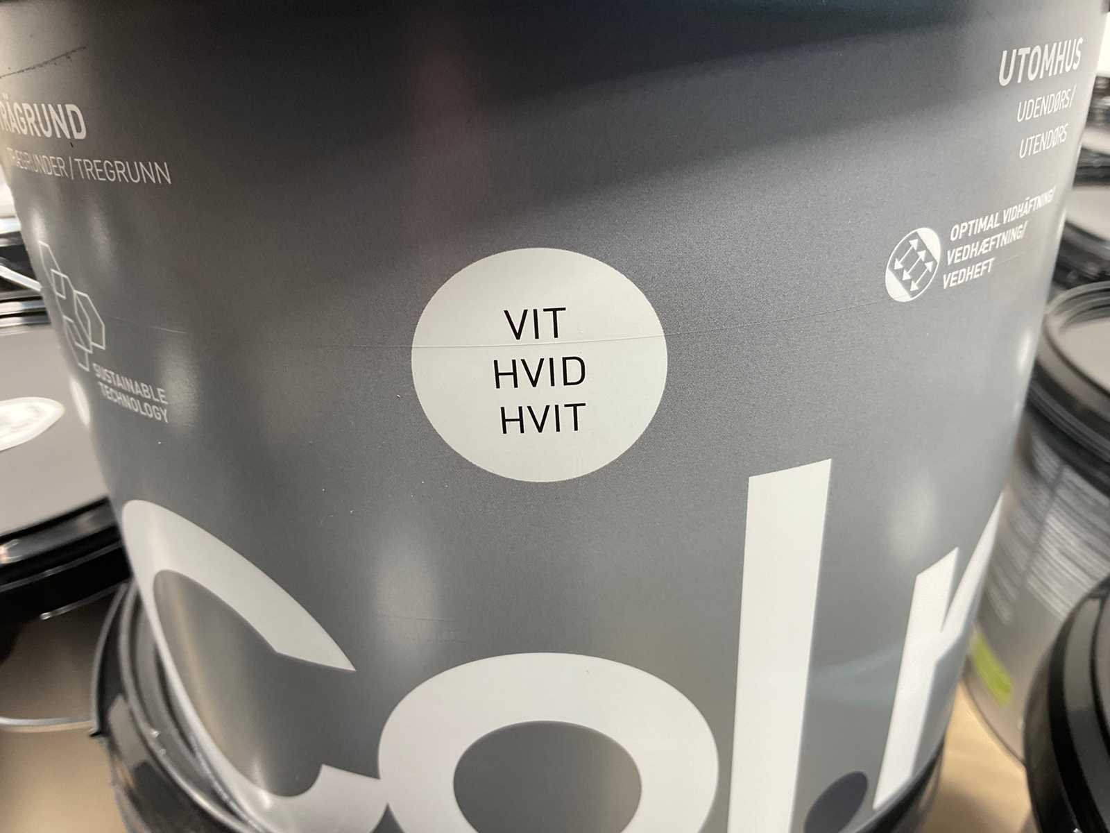 Pallet Col.r grondverf - wit - 144 liter. Bestaat uit pallet met 48 emmers grondverf a 3 liter. Merk: Col.r Kleur: Wit Type: Grondverf