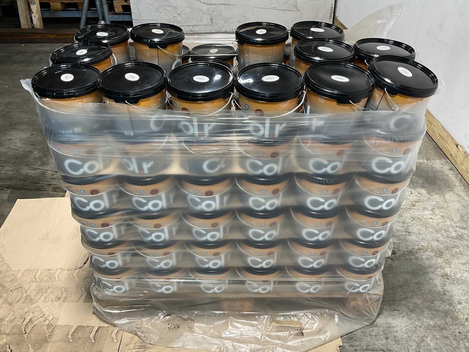 Pallet Col.r tuinbeits - Bruin - 399 liter. Bestaat uit pallet met 133 emmers tuinbeits a 3 liter. Merk: Col.r Kleur: Bruin Type: Tuinbeits