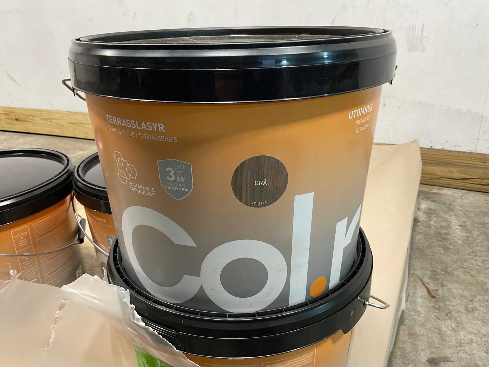 Pallet Col.r tuinbeits - Grijs - 40 liter. Bestaat uit pallet met 4 emmers tuinbeits a 10 liter. Merk: Col.r Kleur: Grijs Type: Tuinbeits