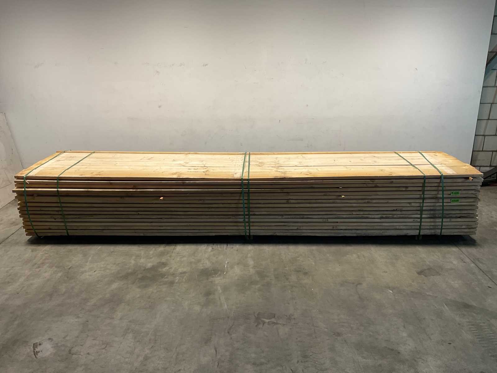 Vuren steigerplank 500x19,5x3 cm, zie foto's voor details. Houtsoort: Vurenhout Lengte: 500cm Breedte: 195mm Hoogte: 30mm