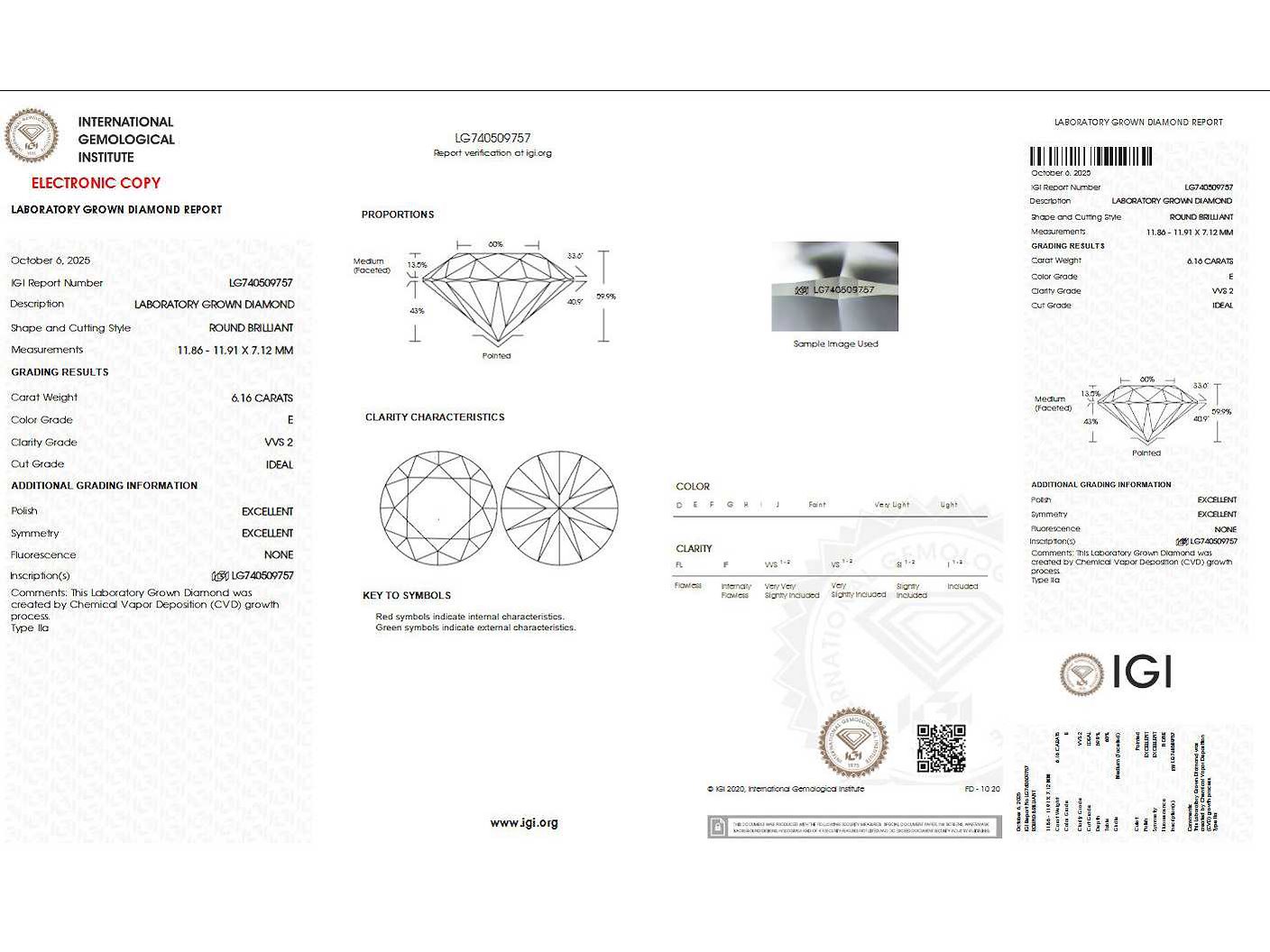 Ongebruikt Vorm: rond Briljant Gewicht: 6,16 CRT Kleur: E Duidelijkheid: VVS2 Pools: Uitstekend Symmetrie: Uitstekend Rapportnummer IGI 14K wit goud Met IGI-certificaat Bezichtiging op afspraak Materiaal: Witgoud Ringmaat : 54 Certificaat: ja Lage schatting: 11000€