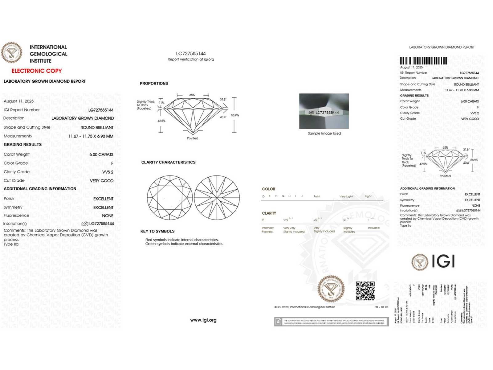 Ongebruikt Vorm: rond Briljant Gewicht: 6.00 CRT Kleur: F Duidelijkheid: VVS2 Pools: Uitstekend Symmetrie: Uitstekend Rapportnummer IGI 14K wit goud Met IGI-certificaat Bezichtiging op afspraak Product type: 14 karaat wit goud Kleur diamant: F Slijpvorm diamant: Rond Briljant Ringmaat: 53 Slijpvorm: rond Certificaat: International Gemological Institute (IGI) Materiaal: 14 karaat wit goud Lage schatting: 10600€
