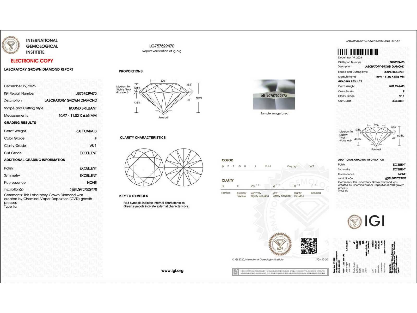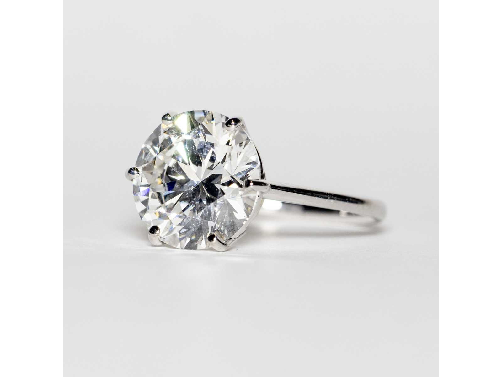 Ongebruikt Vorm: Rond Briljant Gewicht: 5,01 crt Kleur: F Duidelijkheid: VS1 Pools: Uitstekend Symmetrie: Uitstekend 14K wit goud Met IGI-certificaat Bezichtiging op afspraak Product type: 14k wit goud Slijpvorm diamant: Rond Briljant Ringmaat: 54 Certificaat: International Gemological institute (IGI) Kleur: F Materiaal: 14 karaat wit goud Lage schatting: 8800€