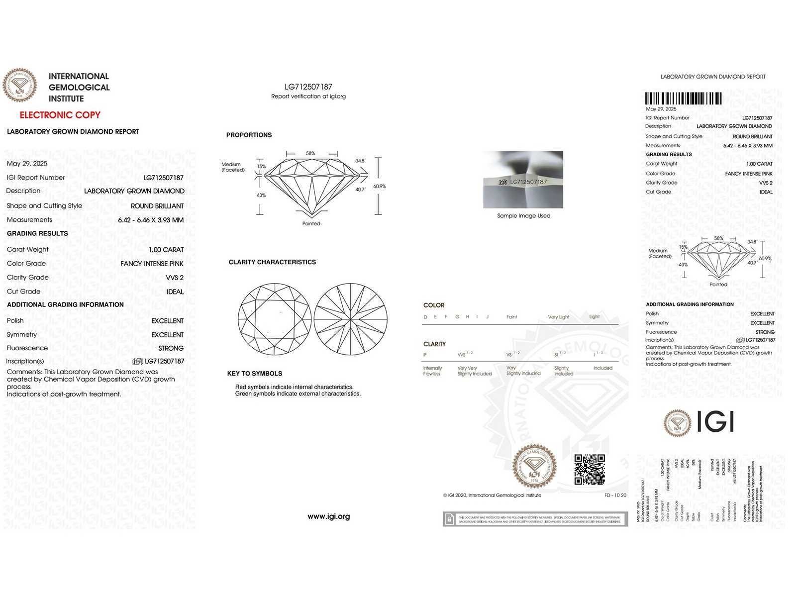 Stone 1: Shape: Round Brilliant Weight: 1.08CT Color: Fancy Intense Pink Clarity: VVS2 Cut: Ideal Polish: Excellent Symmetry: Excellent Fluorescence: Slight Laser inscription IGI: LG717538206 Stone 2: Shape: Round Brilliant Weight: 1.00CT Color: Fancy Intense Pink Clarity: VVS2 Cut: Ideal Polish: Excellent Symmetry: Excellent Fluorescence: Strong Laser inscription IGI: LG712507187 Studs Weight: 1.38 gr. Metal: White Gold Purity: 14kt (585) Bezichtiging op afspraak Materiaal: Witgoud Certificaat: Ja Lage schatting: 3300€