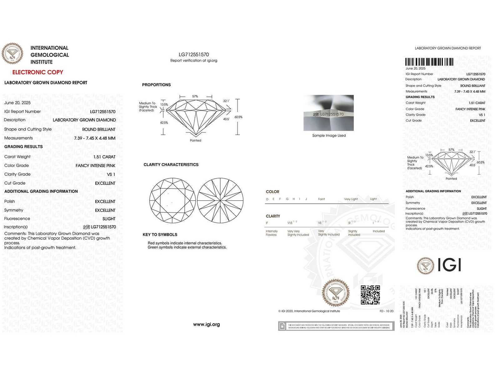 Vorm: Rond schitterend Gewicht: 1.51CT Kleur: Chique intens roze Helderheid: VS1 Uitstekend Uitstekend Symmetrie: uitstekend Ringgewicht: 2,25 g. Witgoud Zuiverheid: 14 karaat (585) Bezichtiging op afspraak Materiaal: Witgoud Ringmaat : 53 Certificaat: ja Lage schatting: 7900€