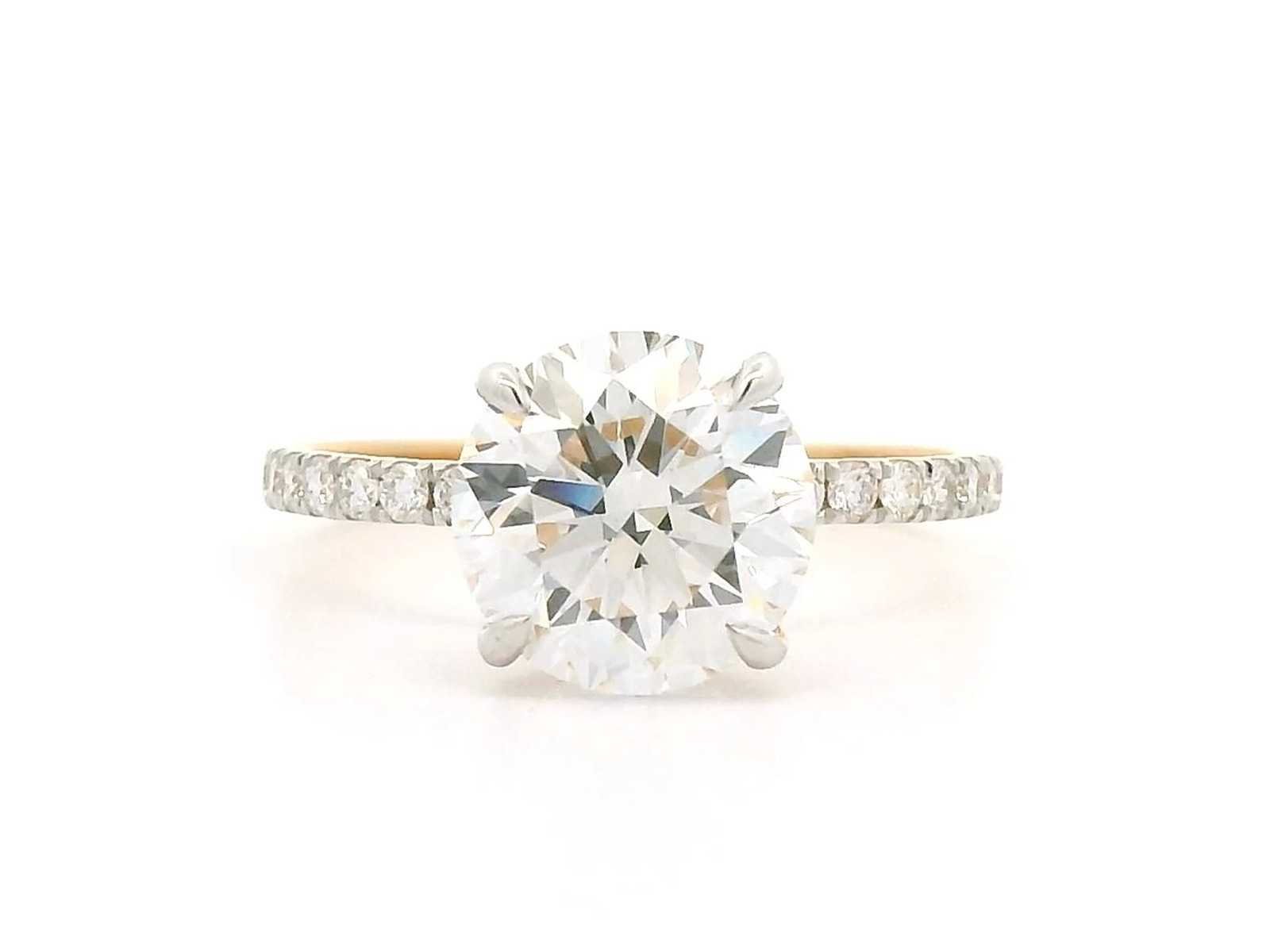 Diamant van 2,84. Met de beste kleurgeving D Exclusieve 18K geelgouden ring 57 EU / 17 IT / 8,00 US Rapportnummer IGI: LG700541197 Vorm: Rond Gewicht van de hoofdelijn: 2,84 CT Kleur: D Duidelijkheid: VS2 Snit: Briljant Pools: Uitstekend Symmetrie: Uitstekend Fluorescentie: Geen Omringende steen - 0,40 (30 stuks) Totaal karaatgewicht - 3,14 karaat Totaal gewicht van de ring: 2.448 gram 18K Geelgouden Ring Zal geleverd worden met IGI-certificaat Bezichtiging op afspraak Materiaal: Geel goud Kleur diamant: F Ringmaat : 57 Certificaat: jA Lage schatting: 4900€