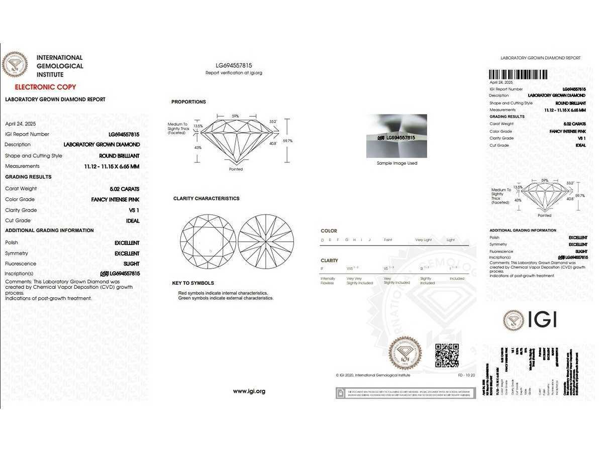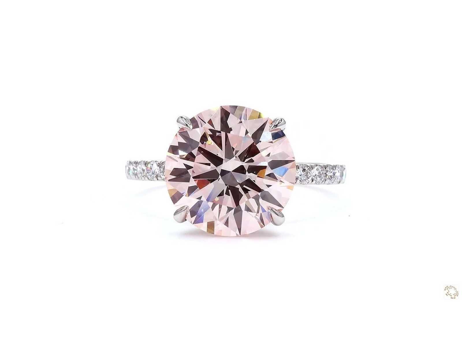 Vorm: Rond briljant geslepen Gewicht van de hoofdsteen in karaat: 5.02 Kleur: Chique intens roze Helderheid: VS1 Symmetrie: uitstekend Bijstenen: - 0,50 (30 stuks) Totaal karaatgewicht - 5,52 karaat Totaal gewicht ring: 3,82 gram Platina 950 Bezichtiging op afspraak Materiaal: Platina Ringmaat : 57 Certificaat: Ja Lage schatting: 12900€