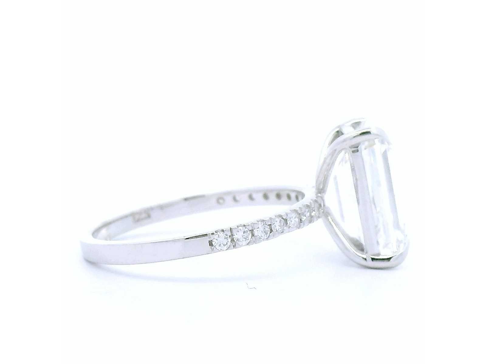 Exclusieve 18K witgouden ring Rapportnummer IGI: LG728535696 Total Carat - 4.23 Vorm: Emerald Cut Gewicht van de hoofdsteen: 4,04 CT Kleur: E Helderheid: VS1 Snede: uitstekend Symmetrie: uitstekend Omringende steen - 0,19 karaat (16 stuks) Totaal aantal karaat - 4,23 karaat Totale ringgewicht: 3,33 gram Zal worden geleverd met IGI-certificaat Bezichtiging op afspraak Materiaal: Witgoud Ringmaat : 56 Certificaat: Ja Lage schatting: 8000€