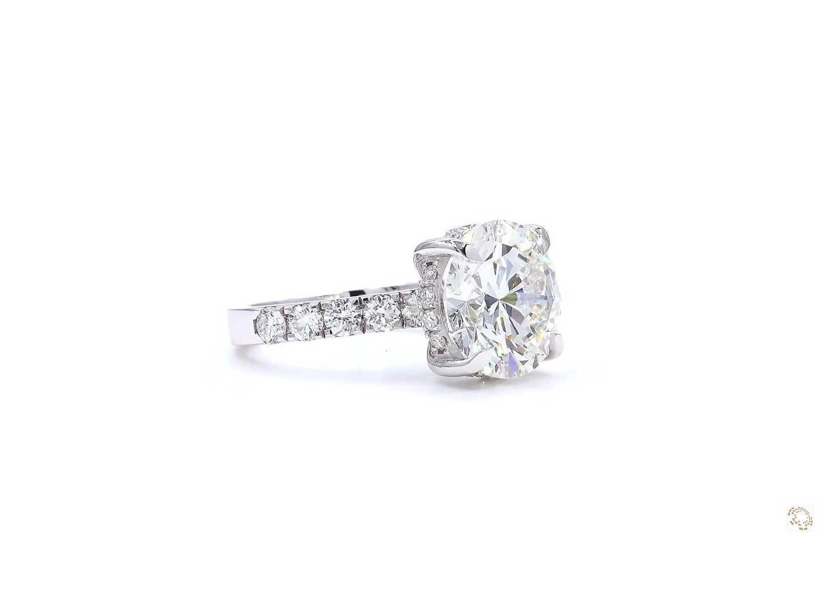 Exclusieve 18K witgouden ring Ringmaat - 54 EU / 14 IT / 6.75 US Rapportnummer IGI: LG724590965 Totaal karaatgewicht - 7,00 Vorm: Rond schitterend Gewicht van de hoofdsteen : 6,01 CT Kleur: F Helderheid: VVS2 Snede: uitstekend Symmetrie: uitstekend Omringende stenen - 0,99 (26 stuks) Totale ringgewicht: 6.210 gram Bezichtiging op afspraak Materiaal: Witgoud Ringmaat : 54 Lage schatting: 13900€
