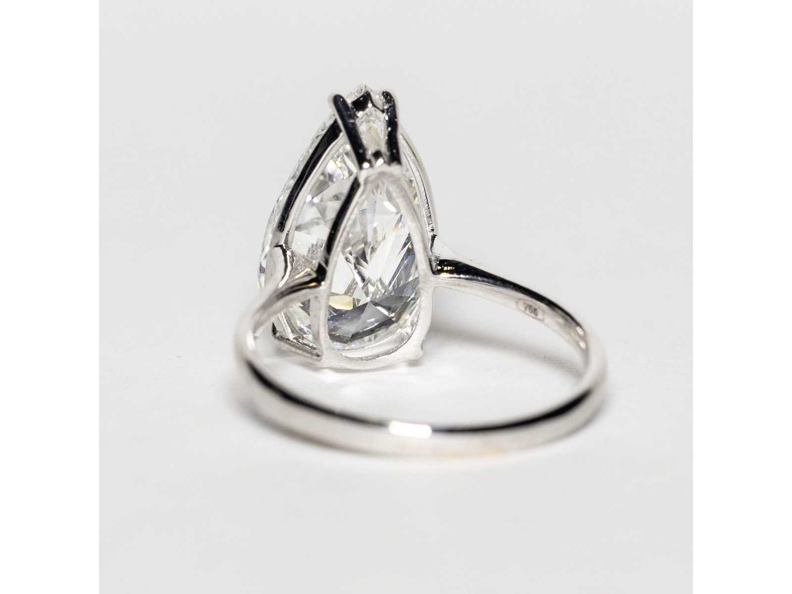 Laboratoriumrapport IGI: LG733540253 Ring in wit 18KT Maat: 14/54/6-1/2 Hoofddiamant-vorm: druppel Totaal: 5,01 crt. Kleur: F Snede: uitstekend Symmetrie: uitstekend Fluorescentie: geen Helderheid: VS1 Bezichtiging op afspraak Materiaal: Witgoud Ringmaat : 54 Lage schatting: 10900€