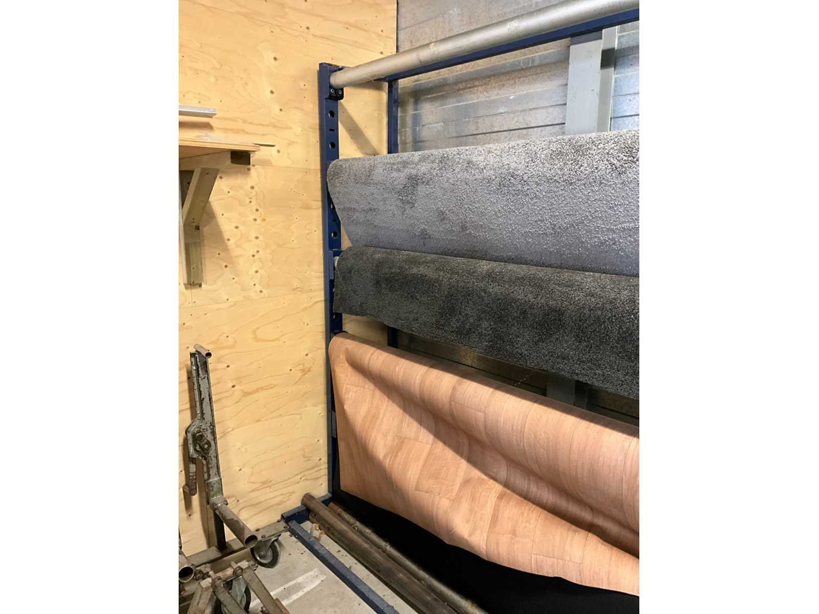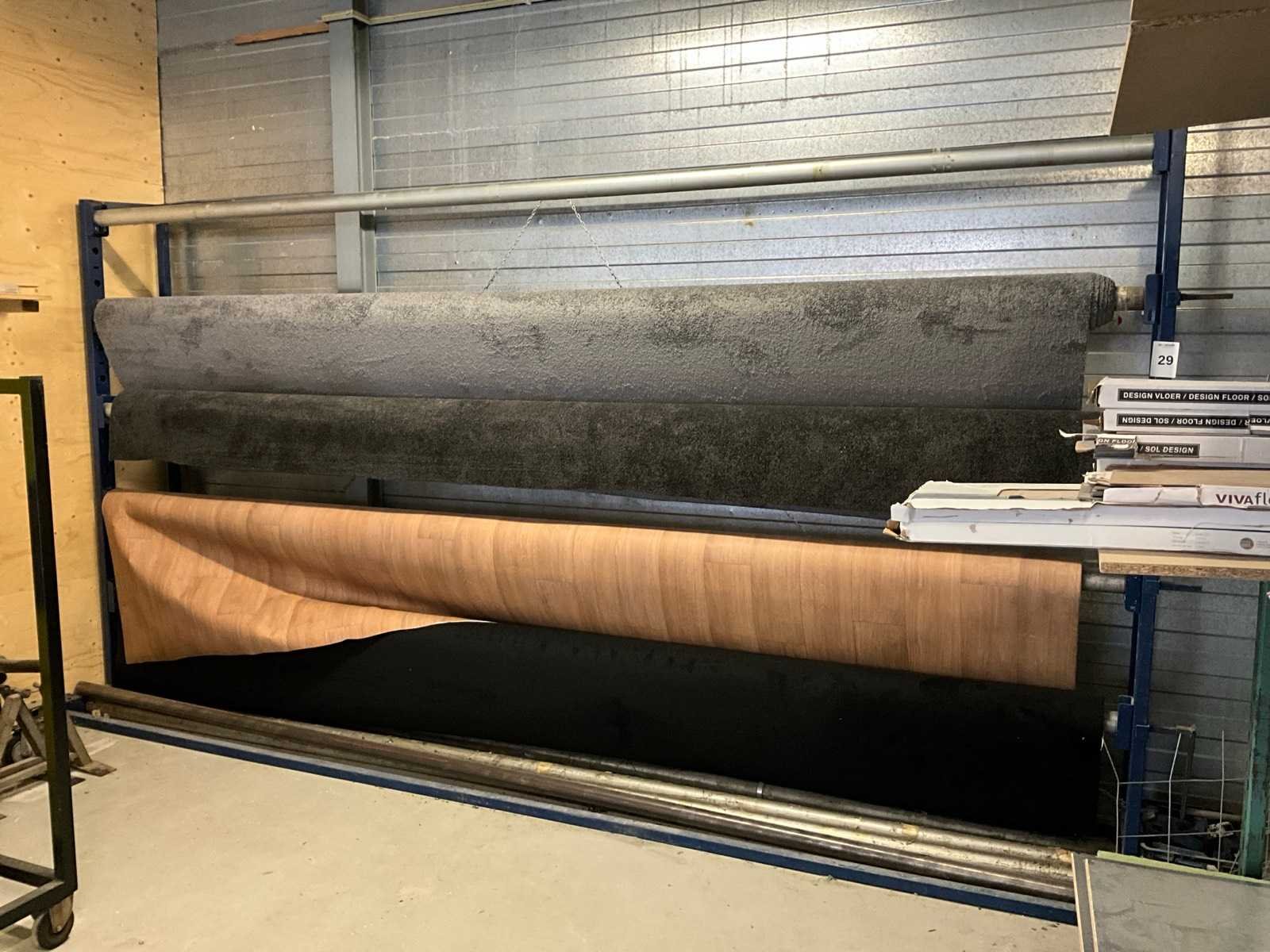 Voorzien van totaal 9 rollen; inclusief rollen tapijt; let op, stellingen dienen uitsluitend 27 maart tussen 09:00 uur en 12:00 uur afgehaald te worden. Aantal staanders: 2 Demontabel: true Lengte: 430cm Breedte: 75cm Hoogte: 227.5cm