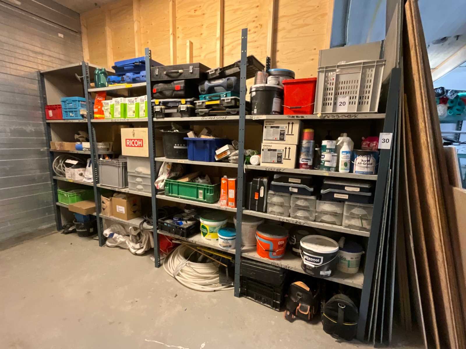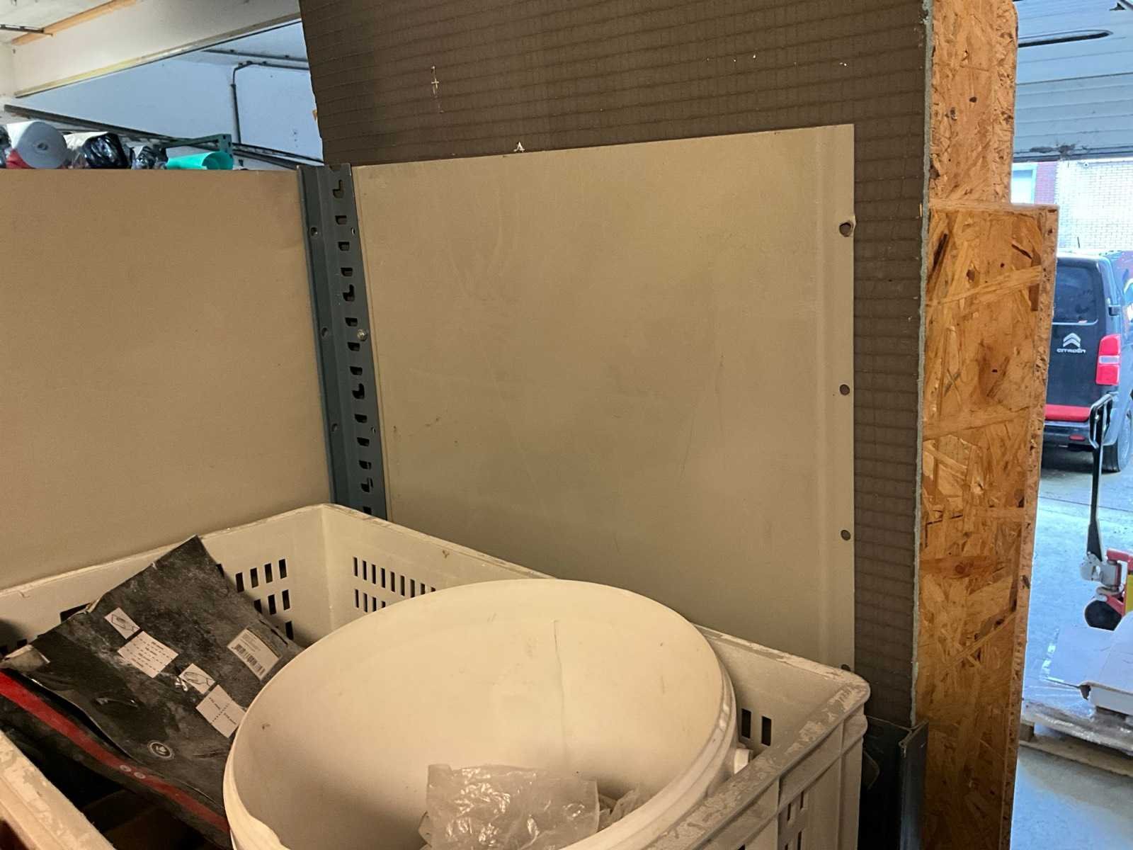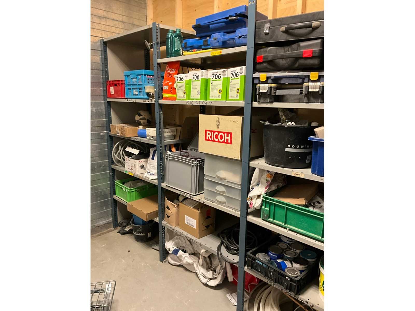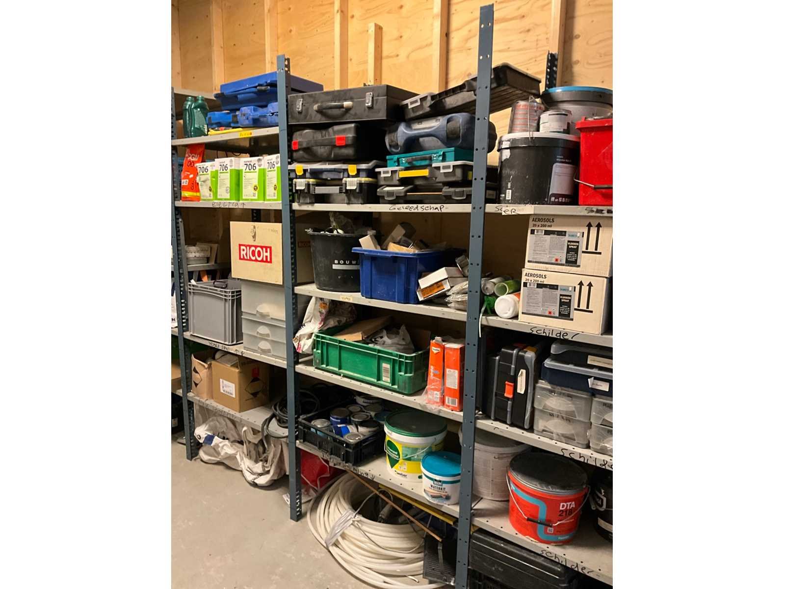 Inhoud niet inbegrepen; let op, stellingen dienen uitsluitend 27 maart tussen 09:00 uur en 12:00 uur afgehaald te worden. Aantal secties: 4 Sectie afm. b: 1000mm Sectie diepte: 600mm Aantal legborden: 17 Demontabel: true Totale afmeting Hoogte: 230cm