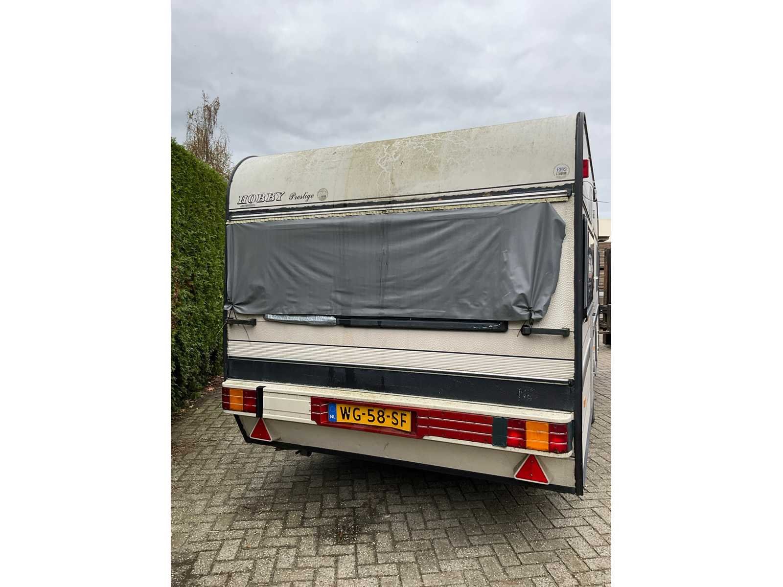 Wij adviseren u gebruik te maken van de kijkdag om zodoende uw eigen oordeel over de staat te kunnen vellen. Kavel dient door koper ter naam te worden gesteld bij de RDW / een RDW erkend bedrijf. Dit kan op het moment u de kavel komt ophalen. U ontvangt dan het documentnummer en de tenaamstellingscodes, waarmee u de overschrijving / export kunt afhandelen. Merk: Hobby Model: Prestige Bruto BPM (NL): 0€ Datum eerste toelating (NL): 1991-07-10 Datum eerste toelating: 1991-06-10 Kenteken: WG-58-SF Carrosserie: caravan Kleur: niet van toepassing Lengte: 560cm Breedte: 210cm Hoogte: 230cm
