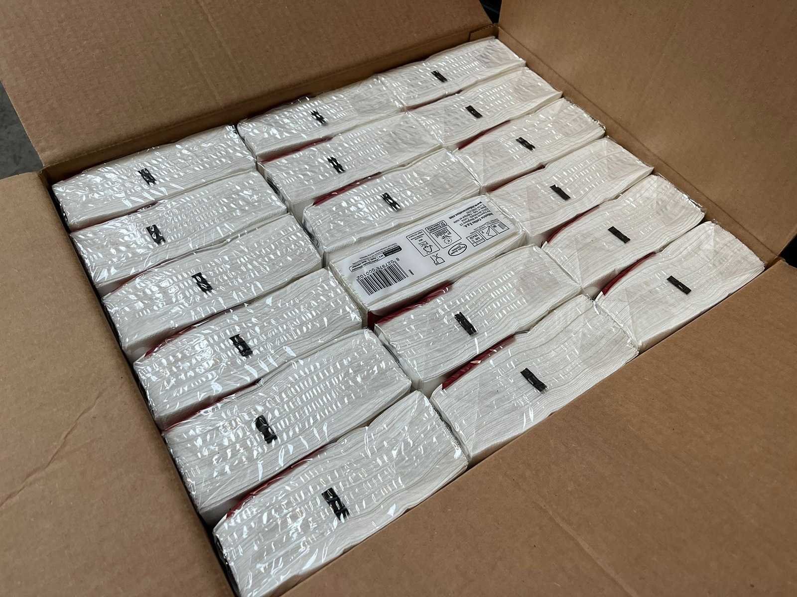 25.200 servetten. Verpakt in 14 dozen. 1800 servetten in een doos. Doos: 36 pak à 50 stuks.