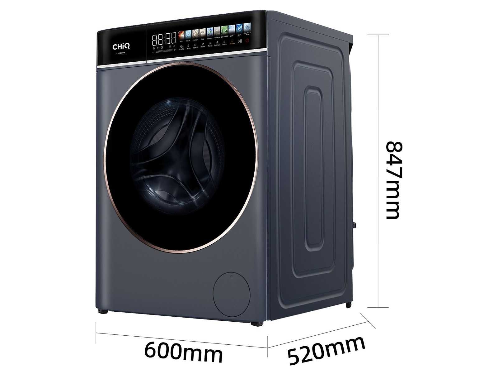 Demo model. Merk: CHiQ Model: CW086581AX Volume: 76dB Aantal toeren per minuut: 1400rpm Type belading: Voorlader Lengte: 60cm Breedte: 52cm Hoogte: 84.7cm Laadvermogen: 8kg