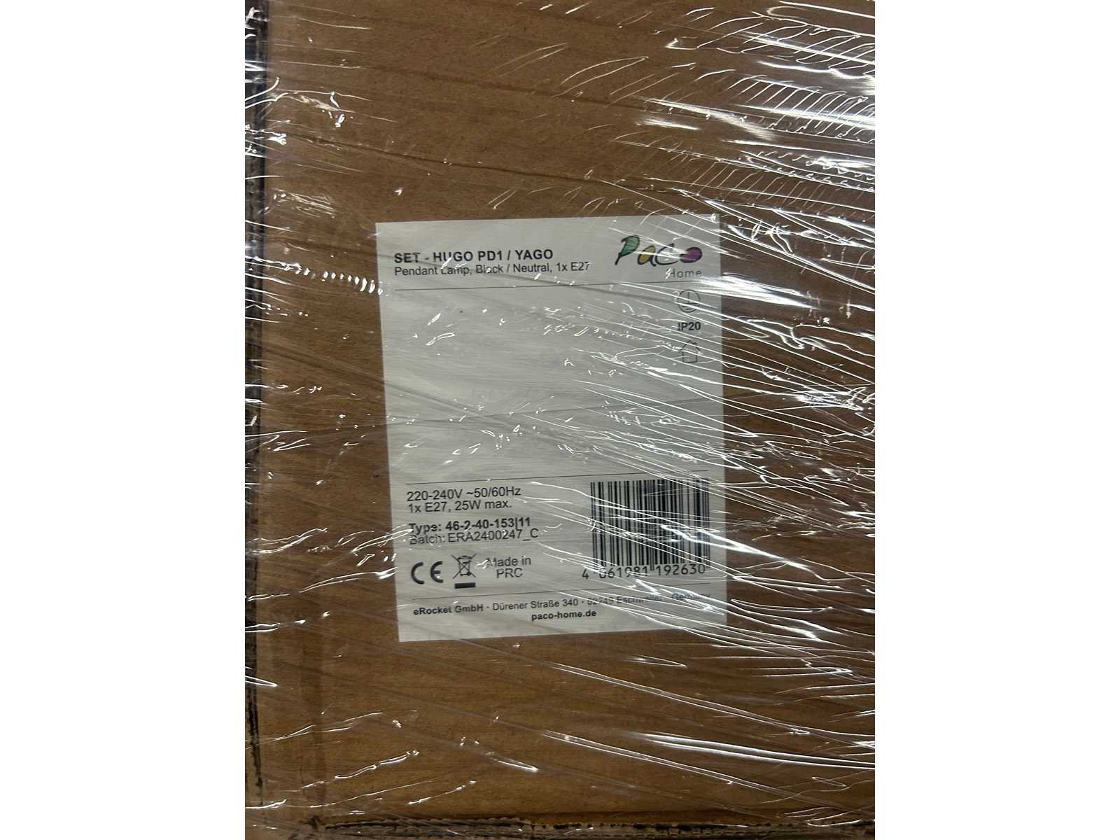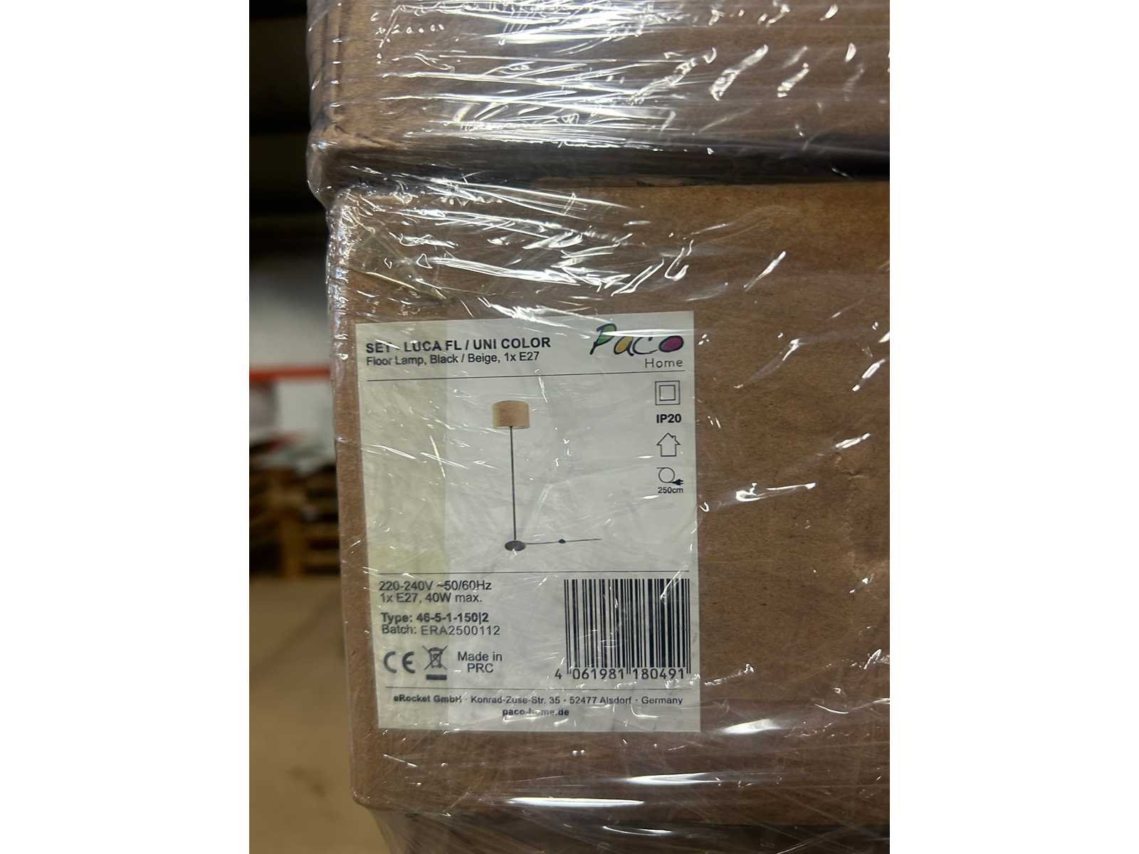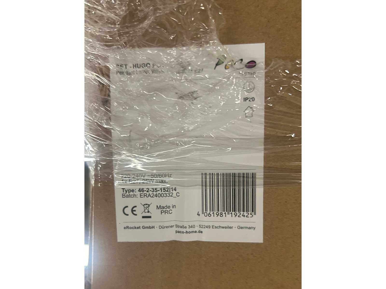 Pallet met design verlichting van Paco Home, rechtstreeks afkomstig uit het fulfillment center. De dozen zijn ongeopend en niet gesorteerd. De inhoud kan bestaan uit nieuwe producten, demo-artikelen of items met beschadigingen of ontbrekende onderdelen. Soms gaat het alleen om een beschadigde verpakking, maar het kan ook voorkomen dat het product zelf beschadigd of incompleet is.