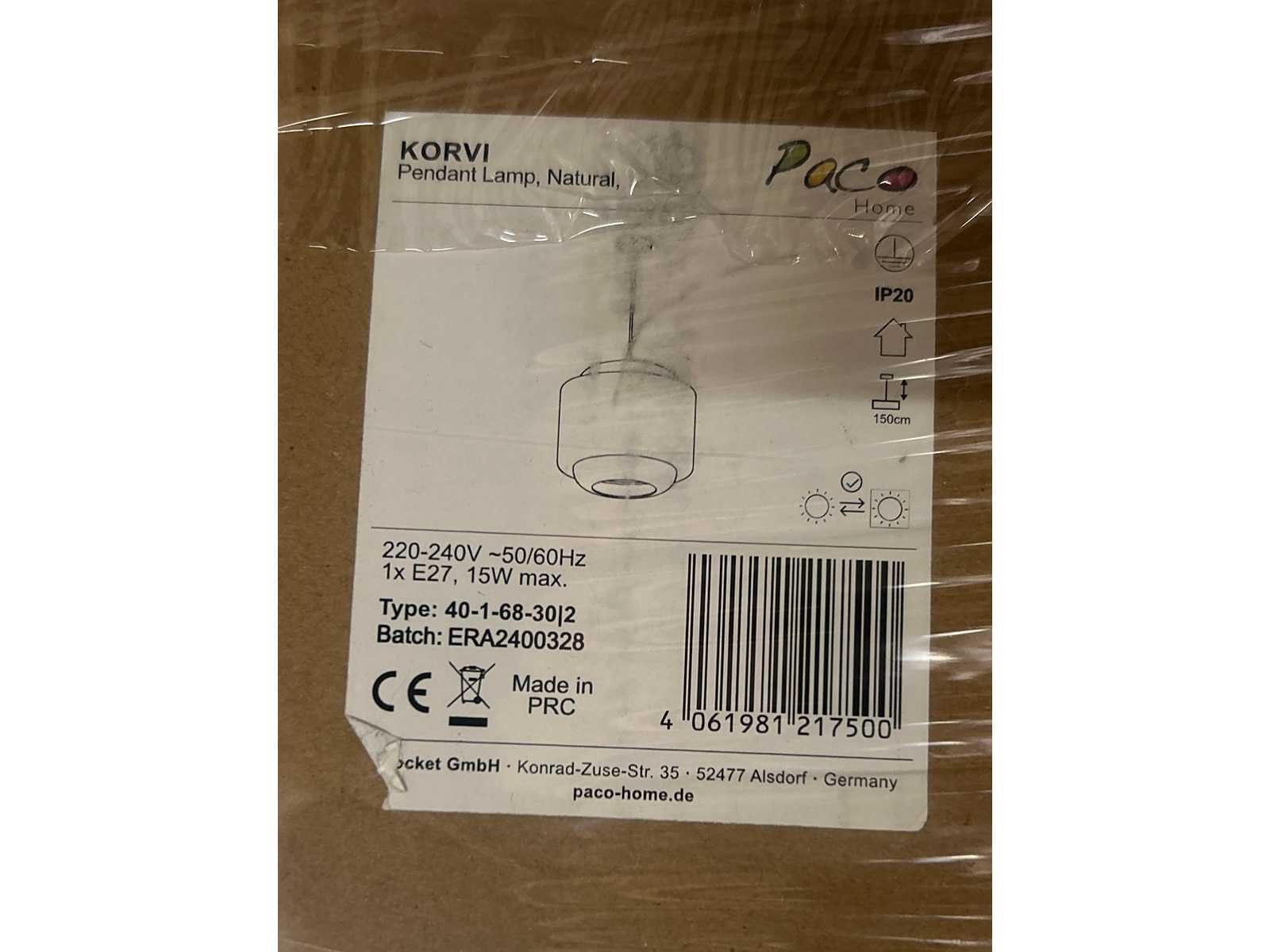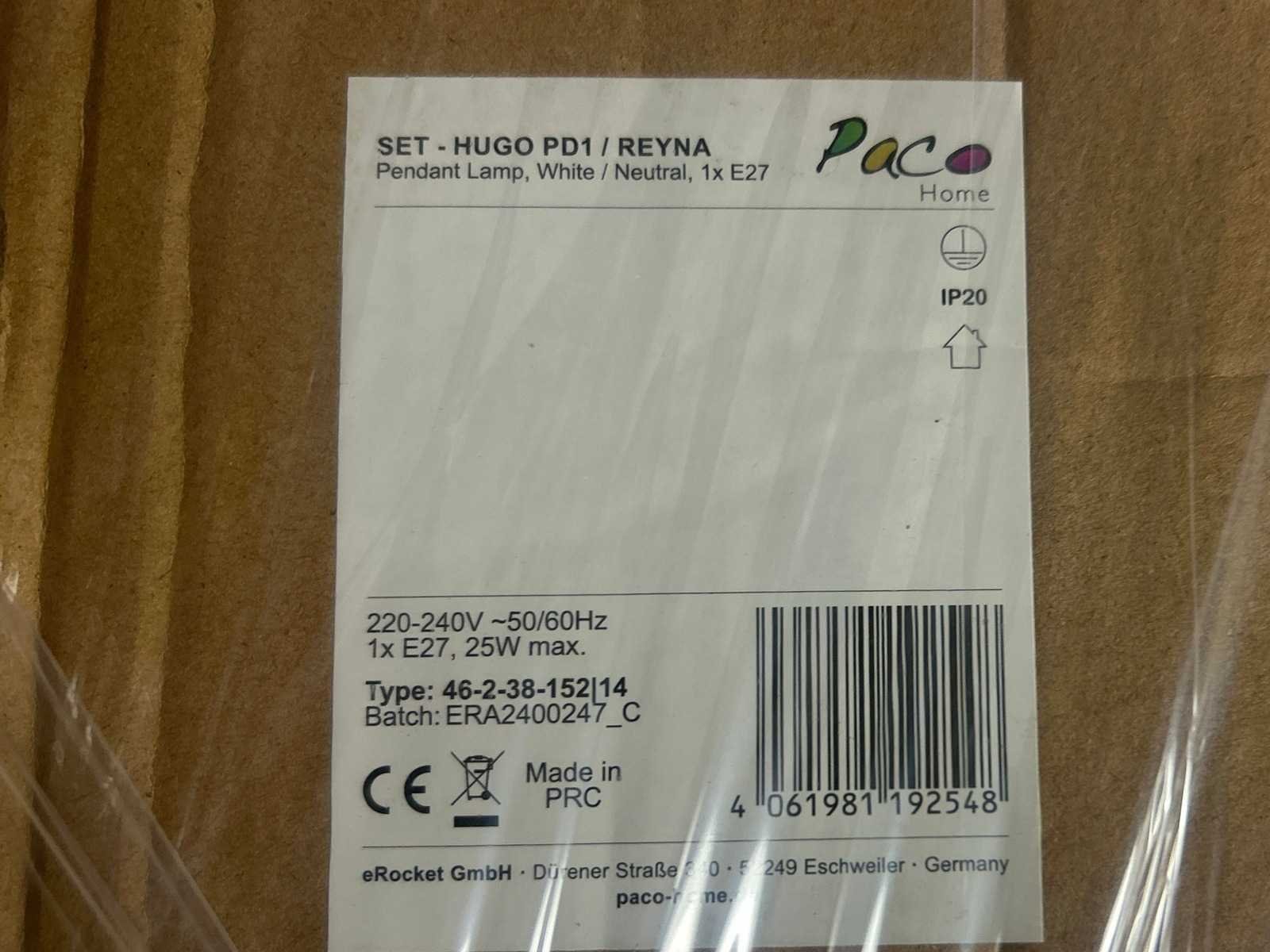 Pallet met design verlichting van Paco Home, rechtstreeks afkomstig uit het fulfillment center. De dozen zijn ongeopend en niet gesorteerd. De inhoud kan bestaan uit nieuwe producten, demo-artikelen of items met beschadigingen of ontbrekende onderdelen. Soms gaat het alleen om een beschadigde verpakking, maar het kan ook voorkomen dat het product zelf beschadigd of incompleet is.