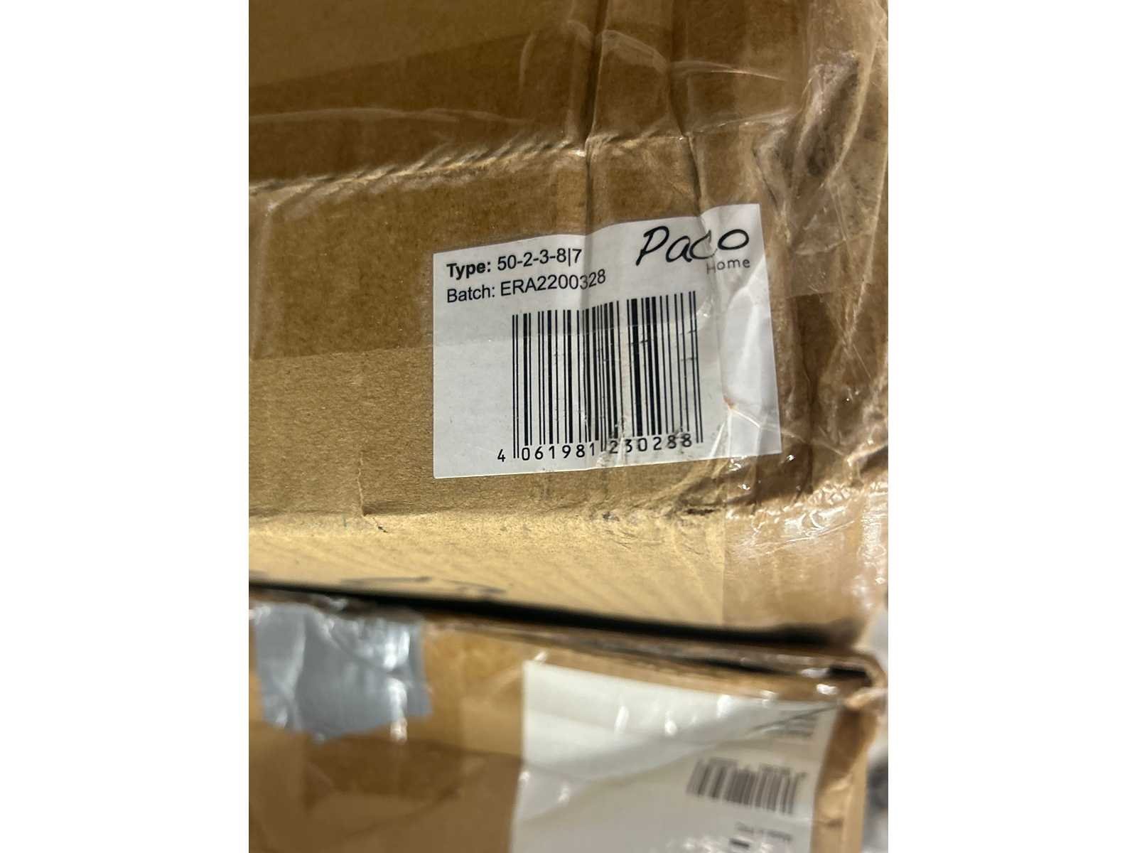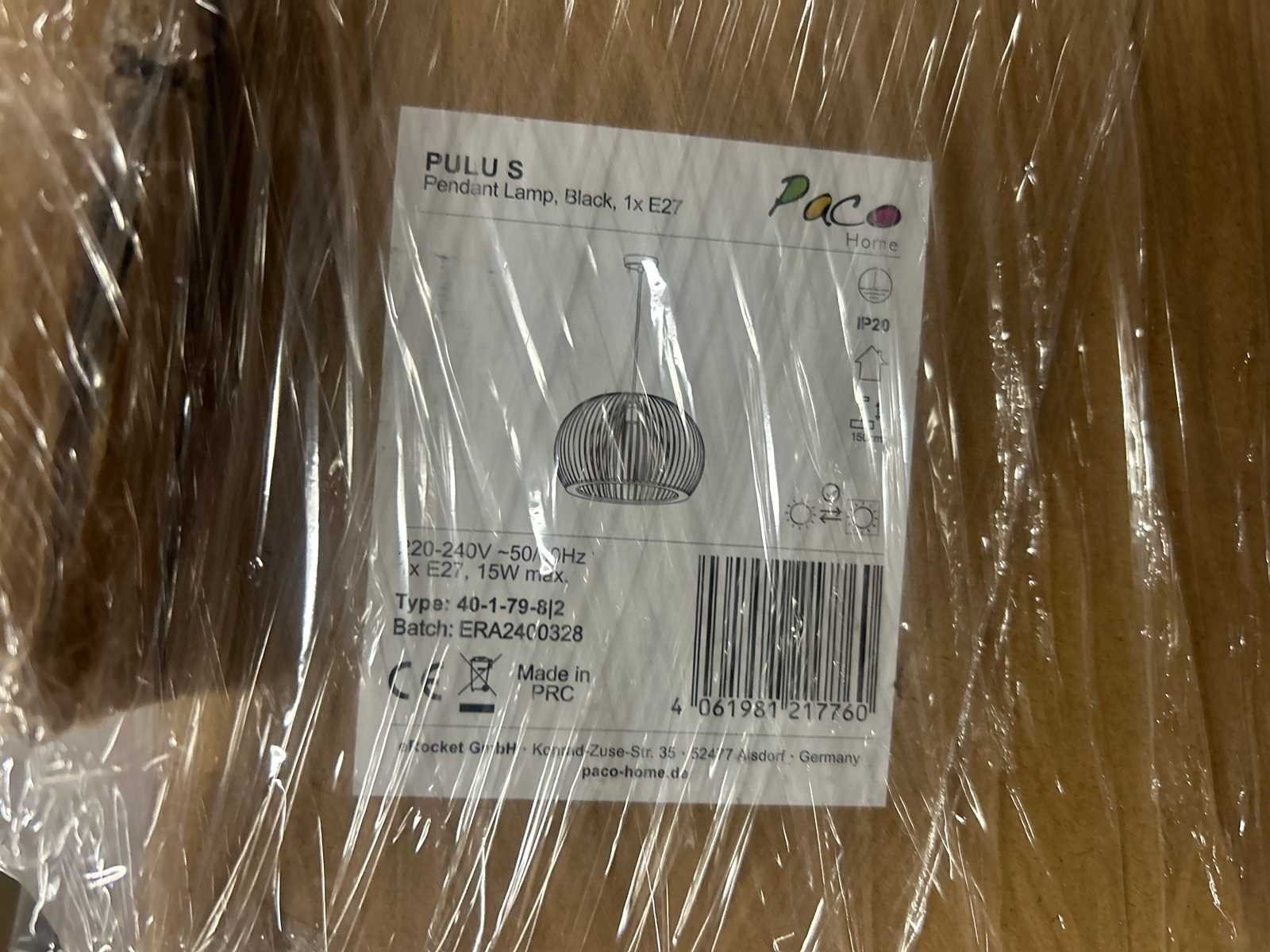 Pallet met design verlichting van Paco Home, rechtstreeks afkomstig uit het fulfillment center. De dozen zijn ongeopend en niet gesorteerd. De inhoud kan bestaan uit nieuwe producten, demo-artikelen of items met beschadigingen of ontbrekende onderdelen. Soms gaat het alleen om een beschadigde verpakking, maar het kan ook voorkomen dat het product zelf beschadigd of incompleet is.