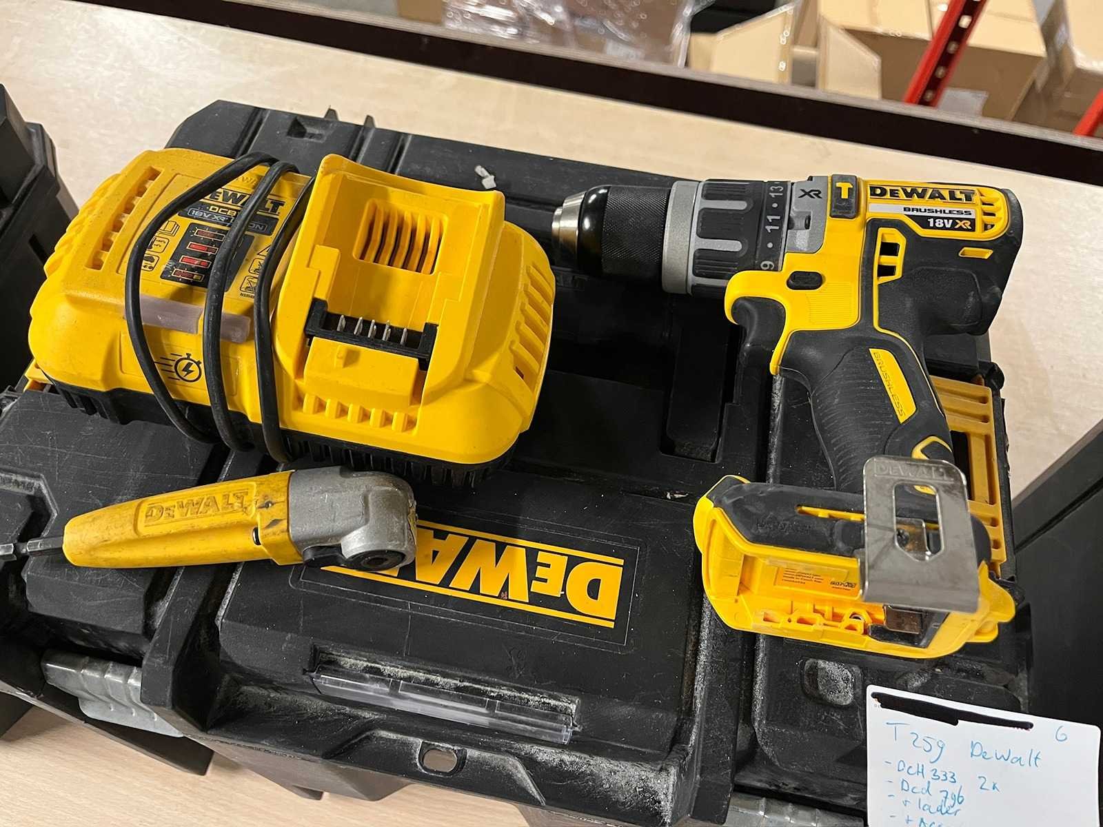 Gebruikt. 1e: DCH333 Accucombihamer 2e: DCH333 Accucombihamer 3e: DCD796 Schroef/boormachine