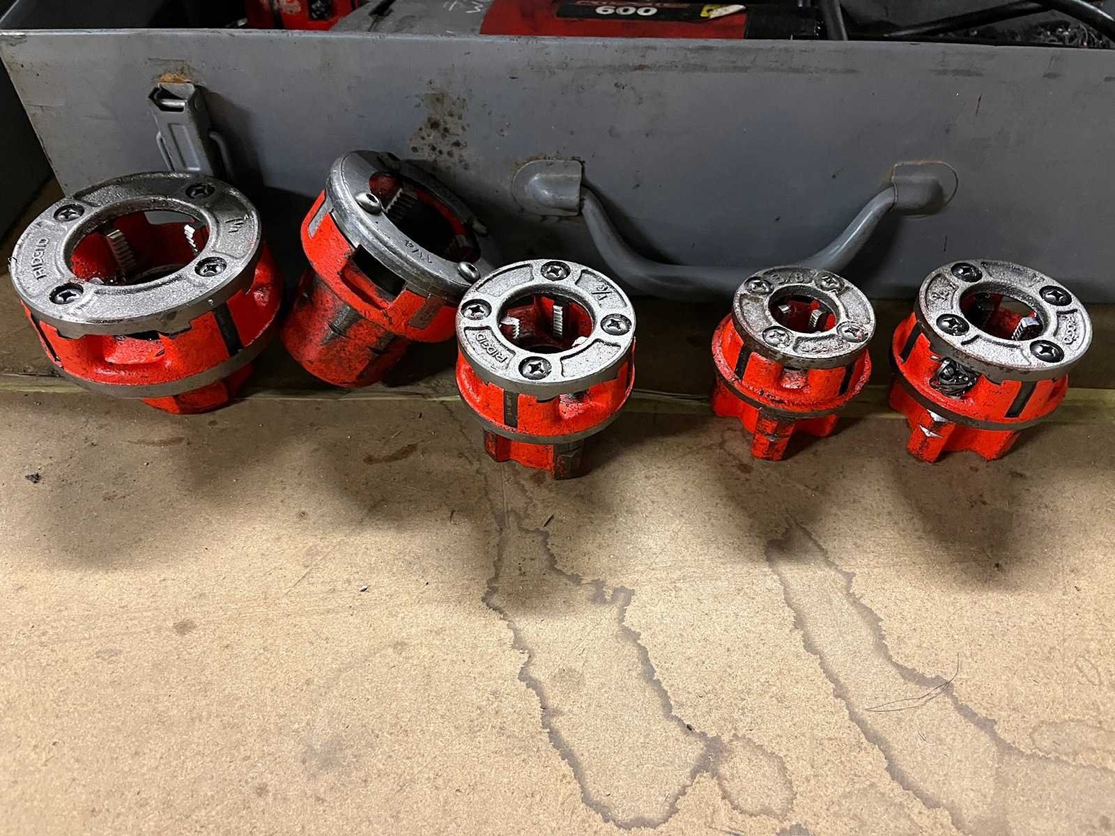 Gebruikt. 2 draadsnijmachines, 5 draadsnijkoppen. Merk: Ridgid Type: Model 600