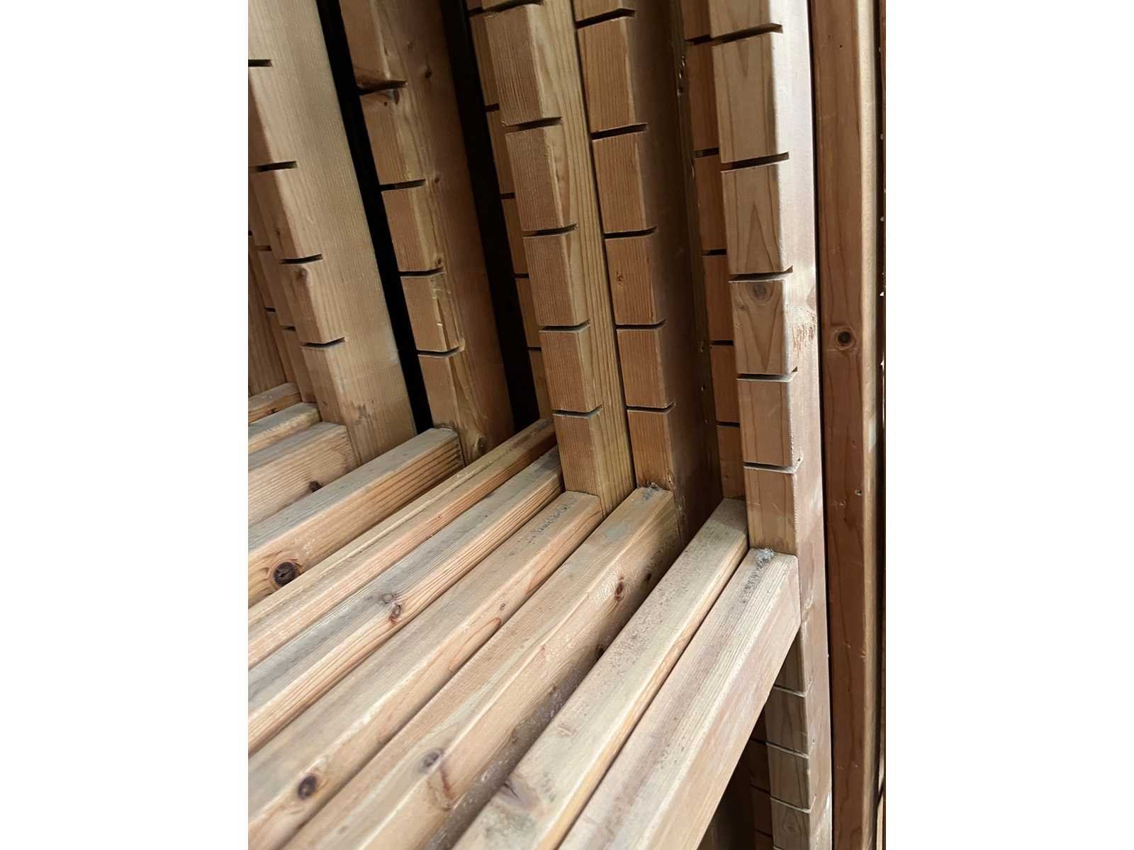 Bruynzeel - 12 meter houten magazijnstelling (15 staanders, 48 legborden)
