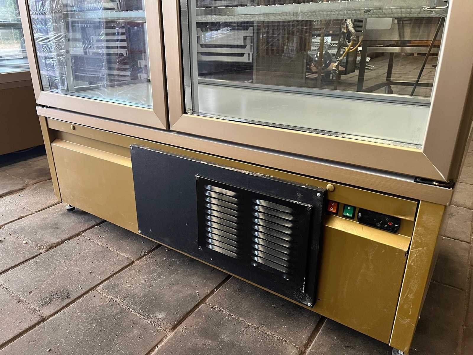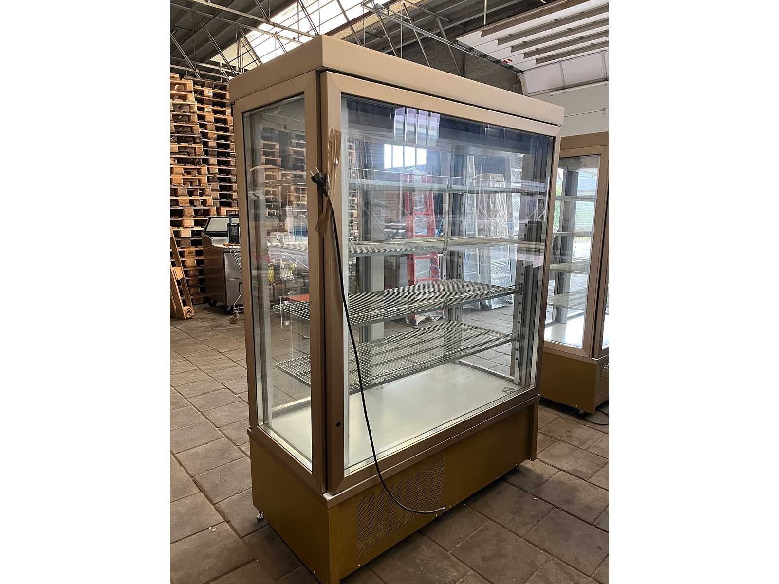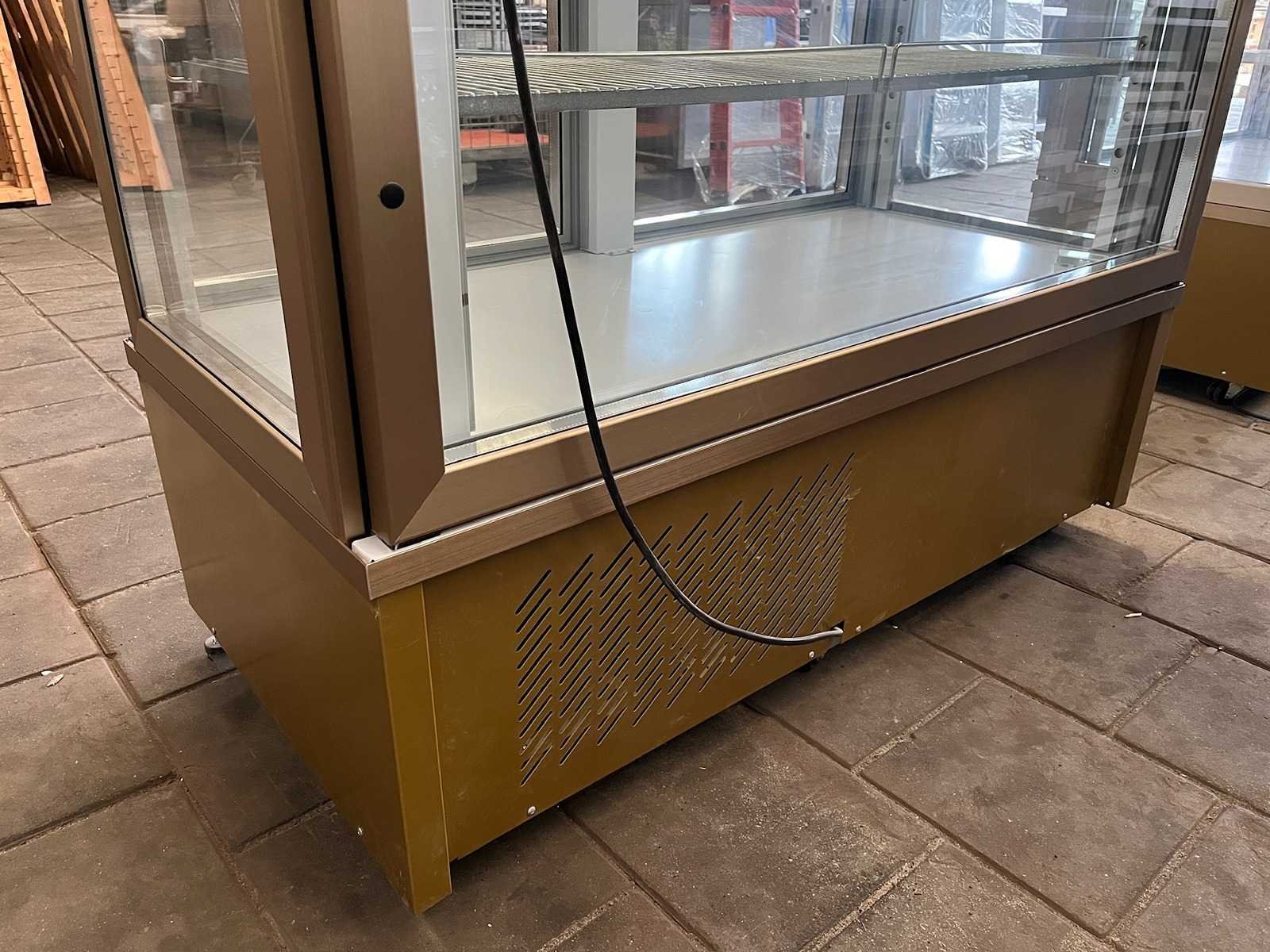 Gebruikt. De 7400 PV is een ruime gebaksvitrine van Tekna. Standaard wordt de vitrine geleverd op zwenkwielen, met de mogelijkheid deze wielen te blokkeren door uitdraaibare stelpoten. Uitgevoerd met 4 zijden glas en 10 verchroomde roosters (510×430 mm) of 5 verchroomde etages. De kast beschikt over automatische ontdooiing. De vitrine van Tekna is geleverd in bronzen kleur. De temperatuur is eenvoudig te regelen via het digitale bedieningspaneel en display. Dit kan binnen een bereik van 0 tot +10 °C. Deze vitrine maakt gebruik van een geforceerd koelsysteem, wat zorgt voor een constante en gelijkmatige temperatuur, ook als de kast vaak wordt geopend. Merk: Tekna Type: 7400 PV Mobiel: true Temperatuurbereik max.: 10°c Aansluiting: 230V Temperatuurbereik min.: 0°c Eigen gewicht: 275kg Totale afmeting L: 1320mm Totale afmeting Breedte: 640mm Totale afmeting Hoogte: 1930mm Capaciteit.: 880l