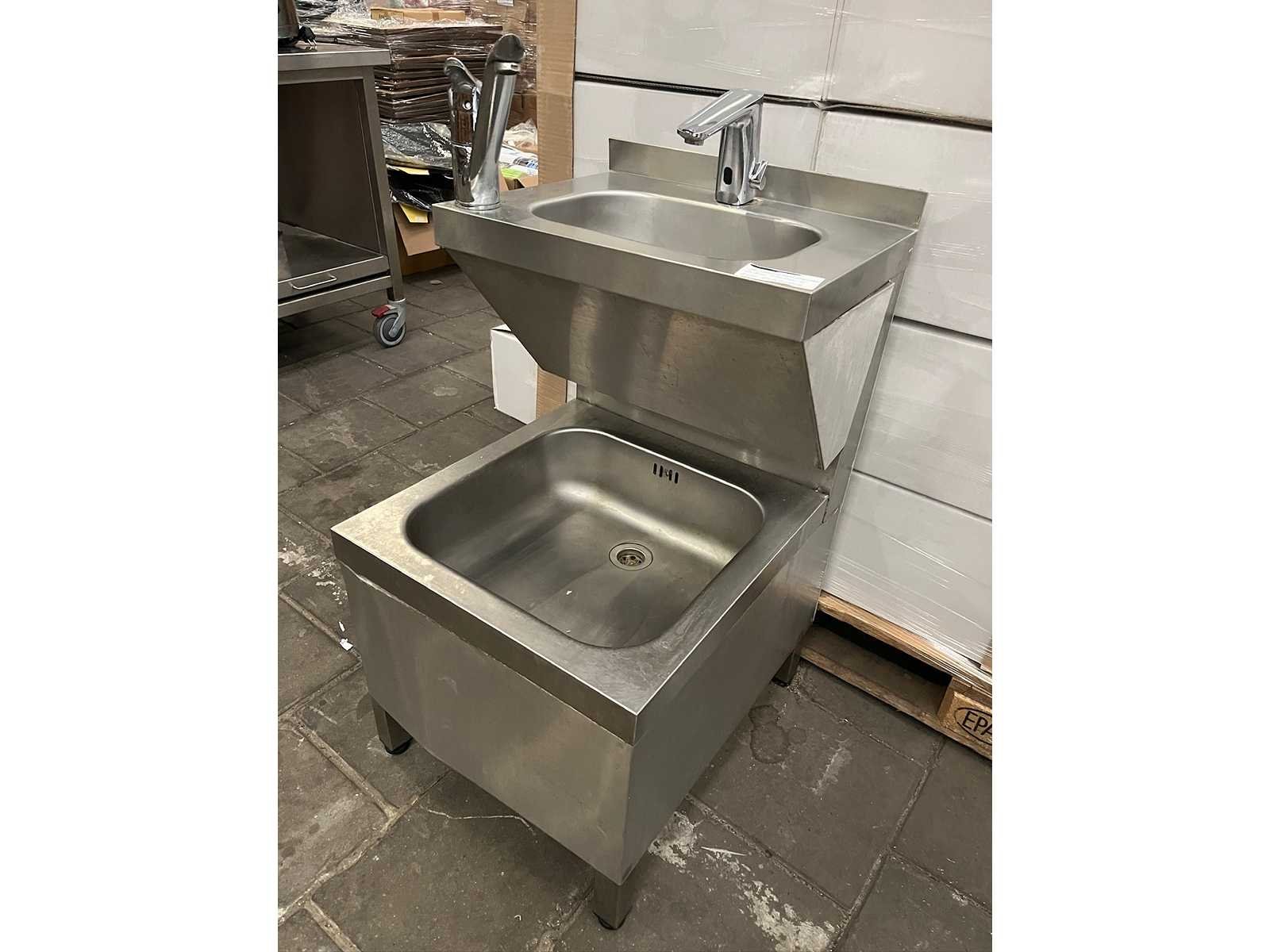 Rvs handwasbak met uitstortbak en sensorkraan