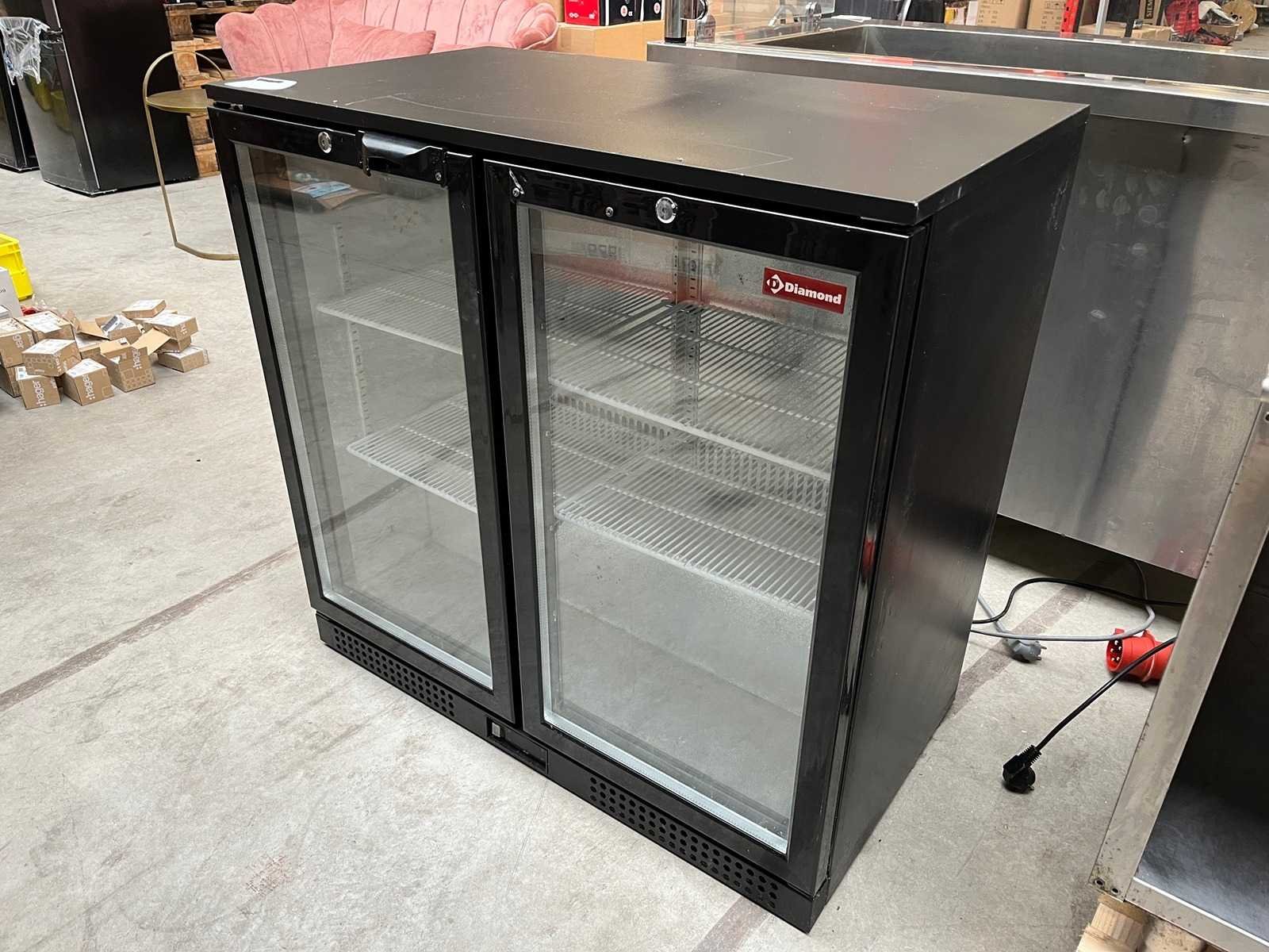 Professionele horeca koelkast van het merk Diamond, uitgevoerd met twee glazen deuren en verstelbare roosters. Geschikt voor gebruik in horeca, bar, lunchroom, winkel of foodservice. Werkend uit locatie gedemonteerd. Specificaties: Merk: Diamond Bouwjaar: 2023 2 glazen deuren Verstelbare roosters Binnenverlichting 230V aansluiting Afmetingen (B x D x H): ca.90 x49,5x 87.5cm Staat: Gebruikt. Beschadigingen en gebruikssporen aanwezig en handvatten afgebroken. Merk: Diamond Rvs: true Totale afmeting L: 90cm Totale afmeting Breedte: 49.5cm Totale afmeting Hoogte: 87.5cm Bouwjaar: 2023