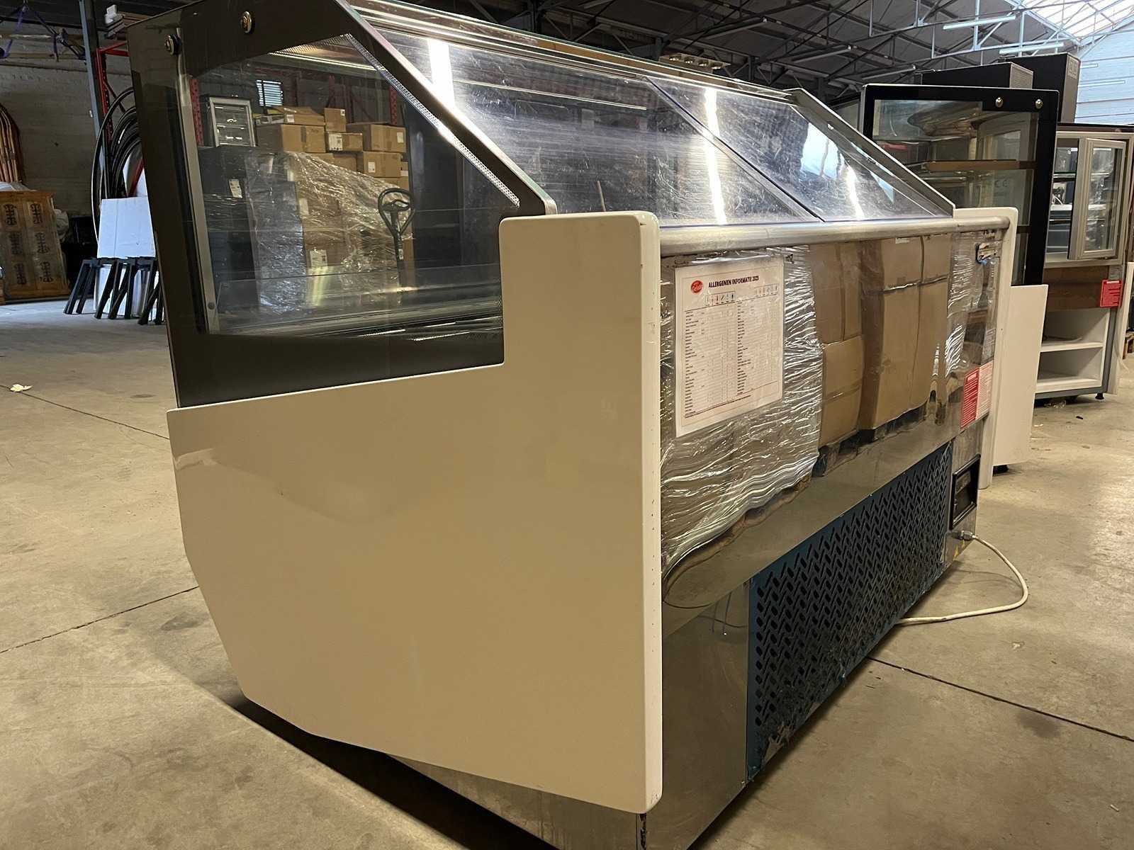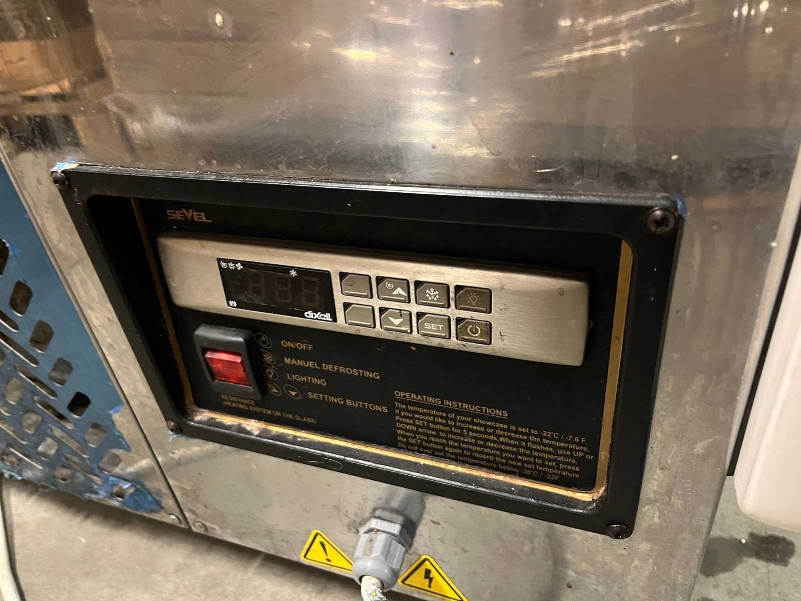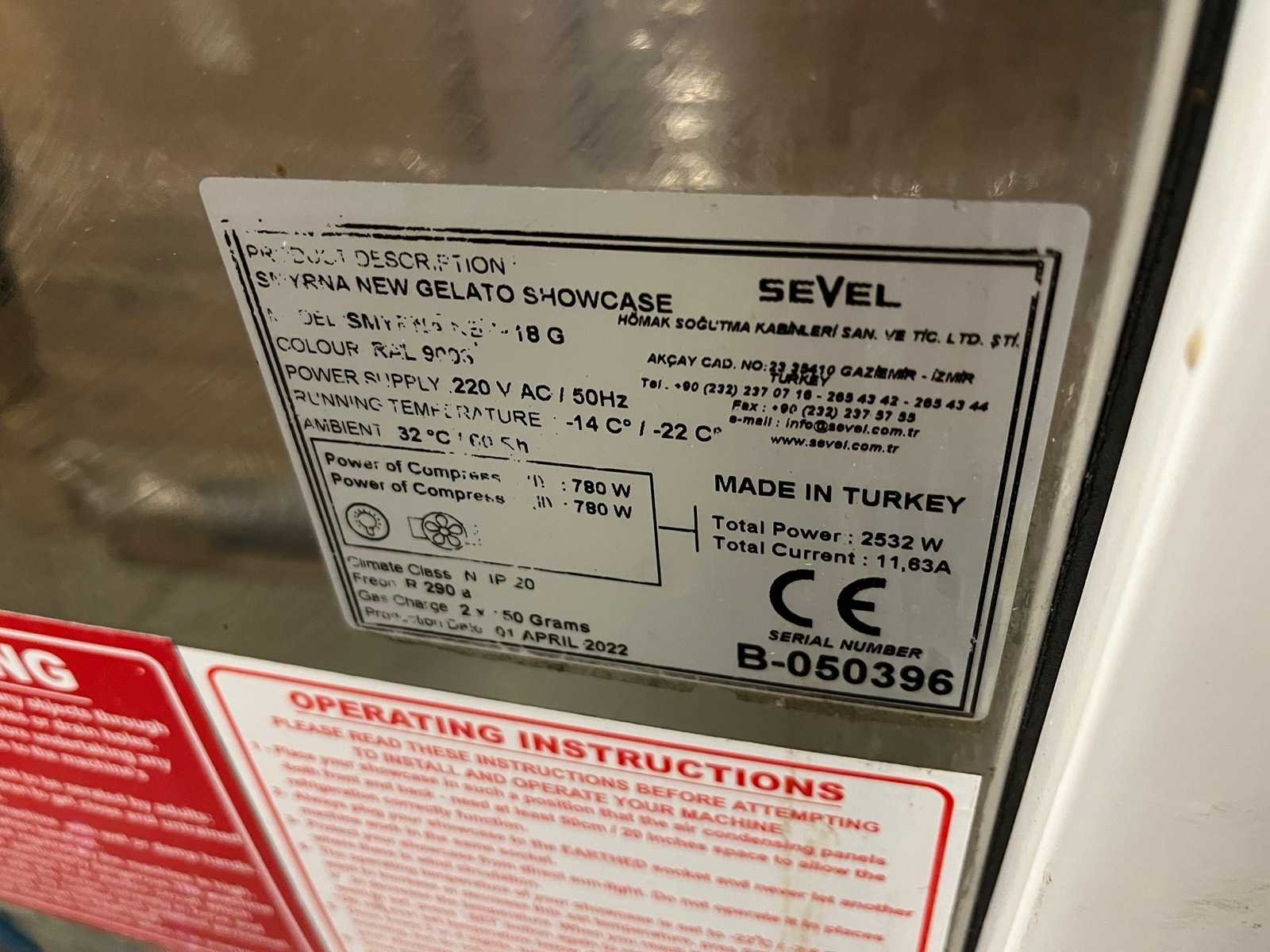 Professionele Sevel ijsvitrine in zeer nette staat. Slechts 2,5 jaar oud en eind 2023 geplaatst. Winterperiodes uitgeschakeld geweest. Werkend uit locatie gedemonteerd. Ideaal voor ijssalon of horeca die direct professioneel wil starten of uitbreiden. Specificaties: • Bouwjaar: 2022 • In gebruik genomen: eind 2023 • Originele factuur aanwezig • 220V / 50Hz • Vermogen: 780W • Dubbel koelsysteem (782W + 782W) • Temperatuur: ca. -14°C tot -22°C • Koelmiddel: R290 • CE-gecertificeerd • Capaciteit: 18 ijsbakken Met waterbak voor ijslepel Staat: Gebruikt. Lichte gebruikssporen aanwezig. Volledig werkend, professioneel onderhouden en zonder stekker met stroomkabel. Merk: SEVEL Type: Smyrna New 18 G Totale afmeting L: 117cm Totale afmeting Breedte: 173.5cm Totale afmeting Hoogte: 113.7cm Bouwjaar: 2022