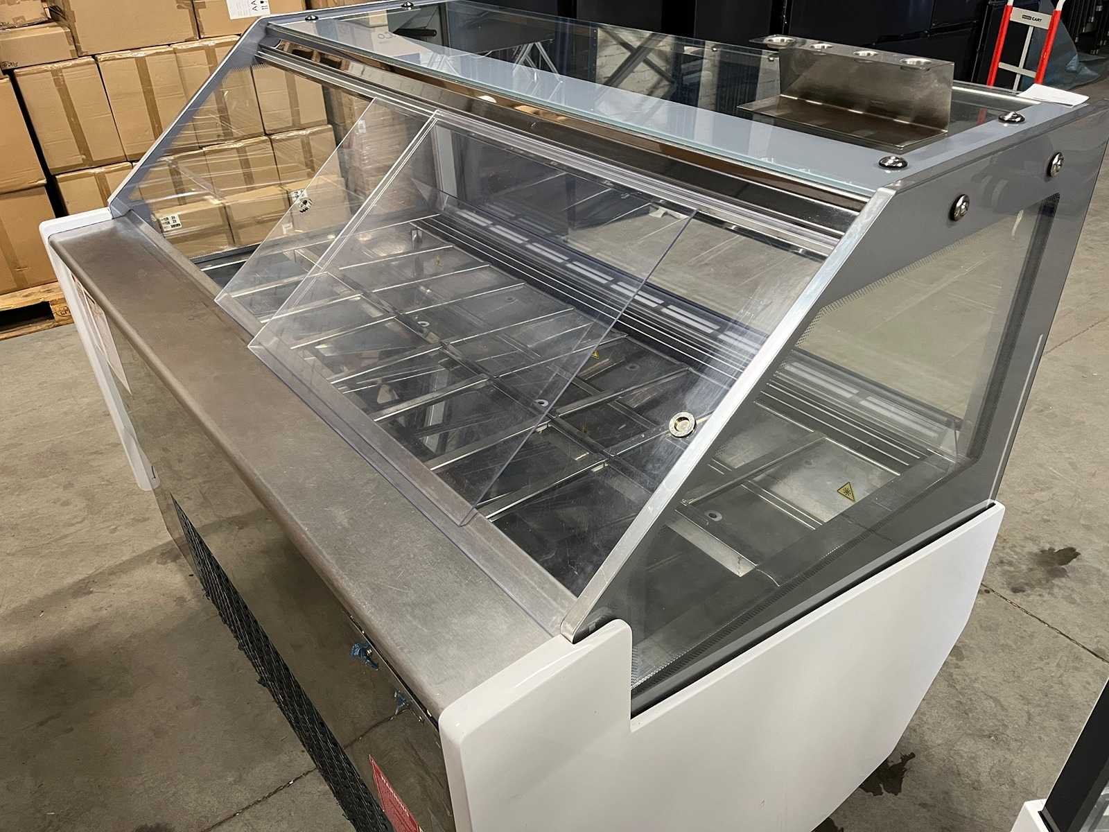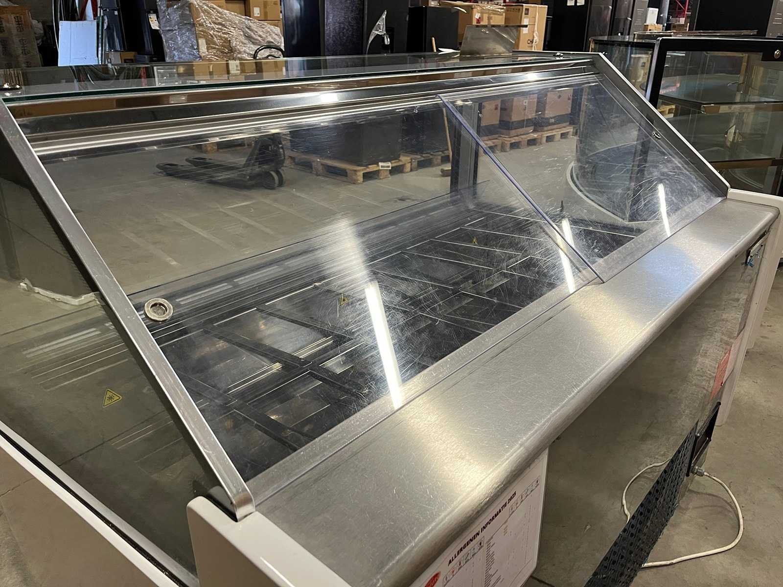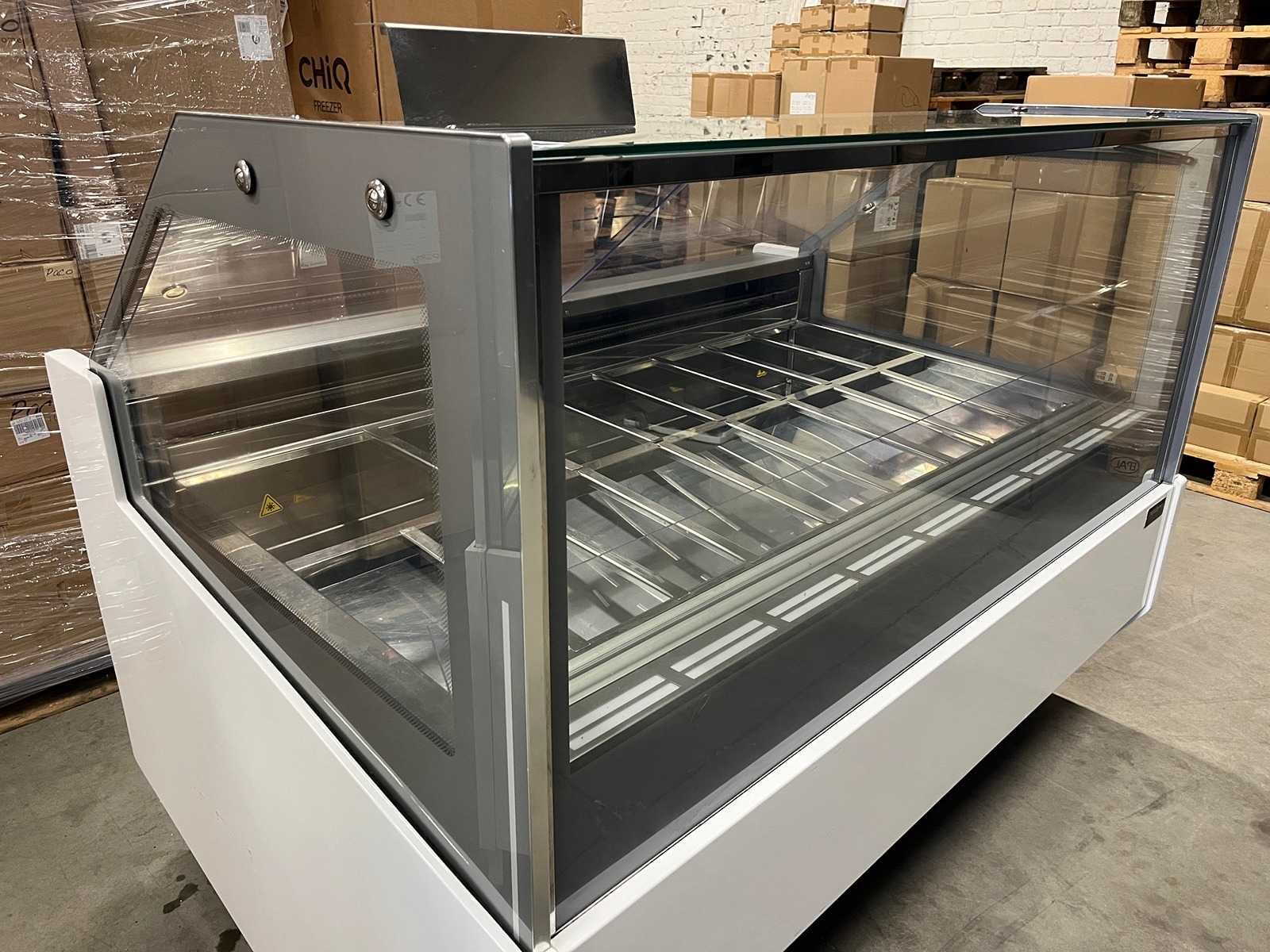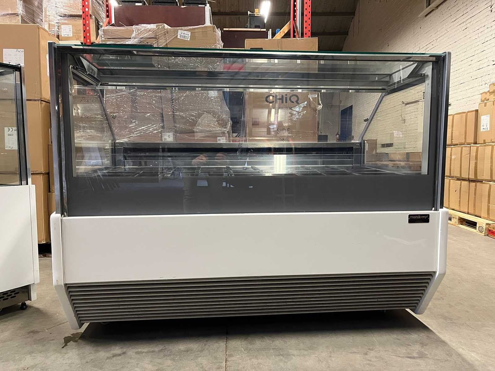 Professionele Sevel ijsvitrine in zeer nette staat. Slechts 2,5 jaar oud en eind 2023 geplaatst. Winterperiodes uitgeschakeld geweest. Werkend uit locatie gedemonteerd. Ideaal voor ijssalon of horeca die direct professioneel wil starten of uitbreiden. Specificaties: • Bouwjaar: 2022 • In gebruik genomen: eind 2023 • Originele factuur aanwezig • 220V / 50Hz • Vermogen: 780W • Dubbel koelsysteem (782W + 782W) • Temperatuur: ca. -14°C tot -22°C • Koelmiddel: R290 • CE-gecertificeerd • Capaciteit: 18 ijsbakken Met waterbak voor ijslepel Staat: Gebruikt. Lichte gebruikssporen aanwezig. Volledig werkend, professioneel onderhouden en zonder stekker met stroomkabel. Merk: SEVEL Type: Smyrna New 18 G Totale afmeting L: 117cm Totale afmeting Breedte: 173.5cm Totale afmeting Hoogte: 113.7cm Bouwjaar: 2022