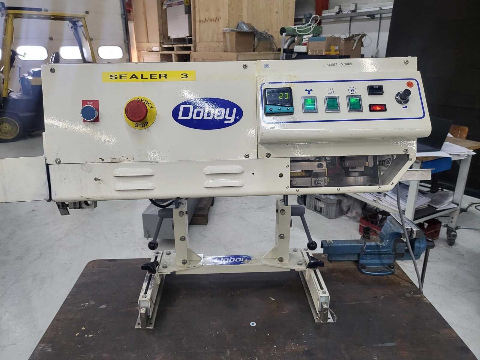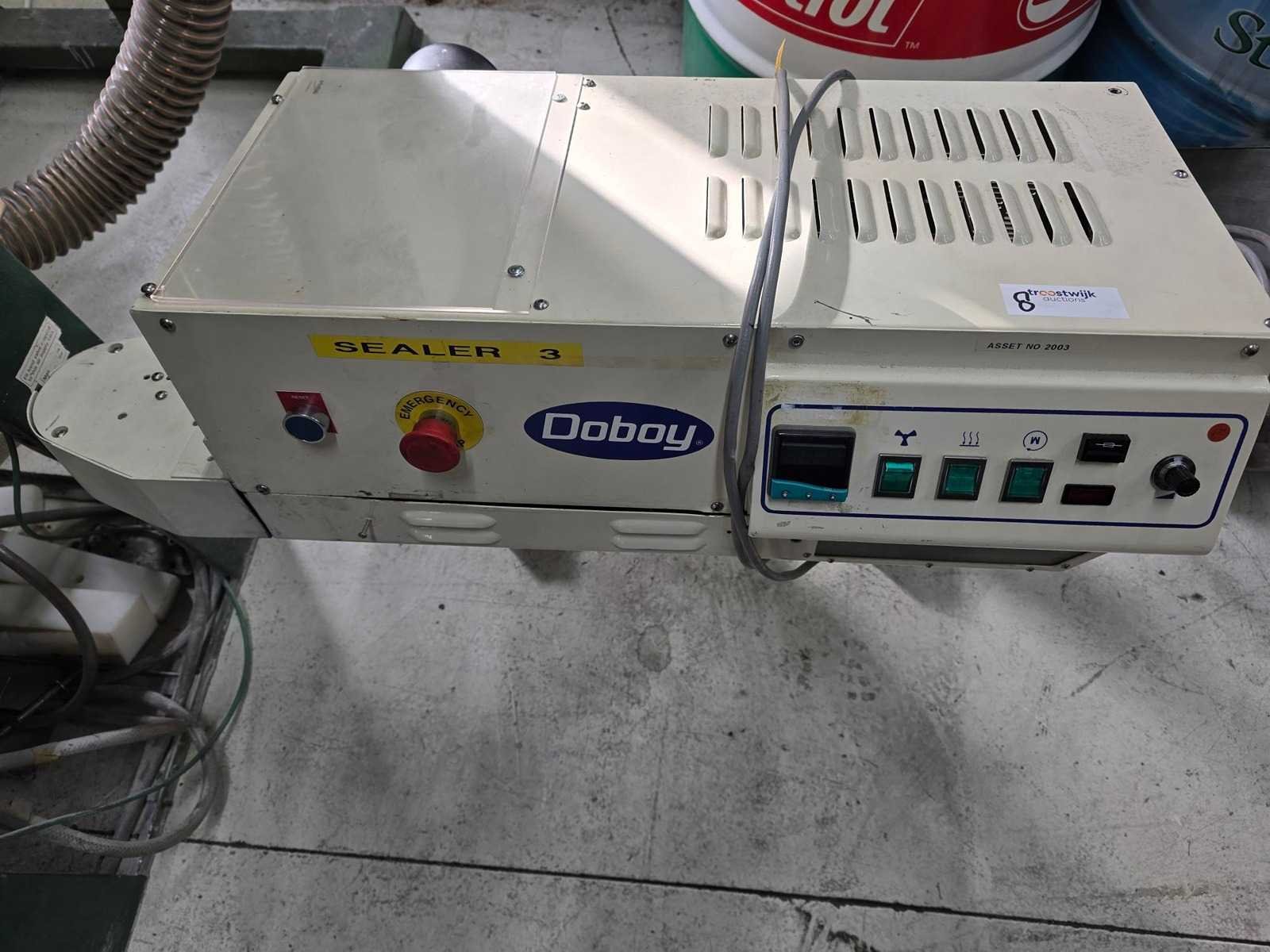 2x doboy sealer 1 werkend 1 voor reserve onderdelen Merk: Doboy Type: BD-V Aansluiting: 220V Eigen gewicht: 200kg Totale afmeting L: 1000mm Totale afmeting Breedte: 1000mm Totale afmeting Hoogte: 800mm Leveringsvoorwaarden: Geladen op vrachtwagen