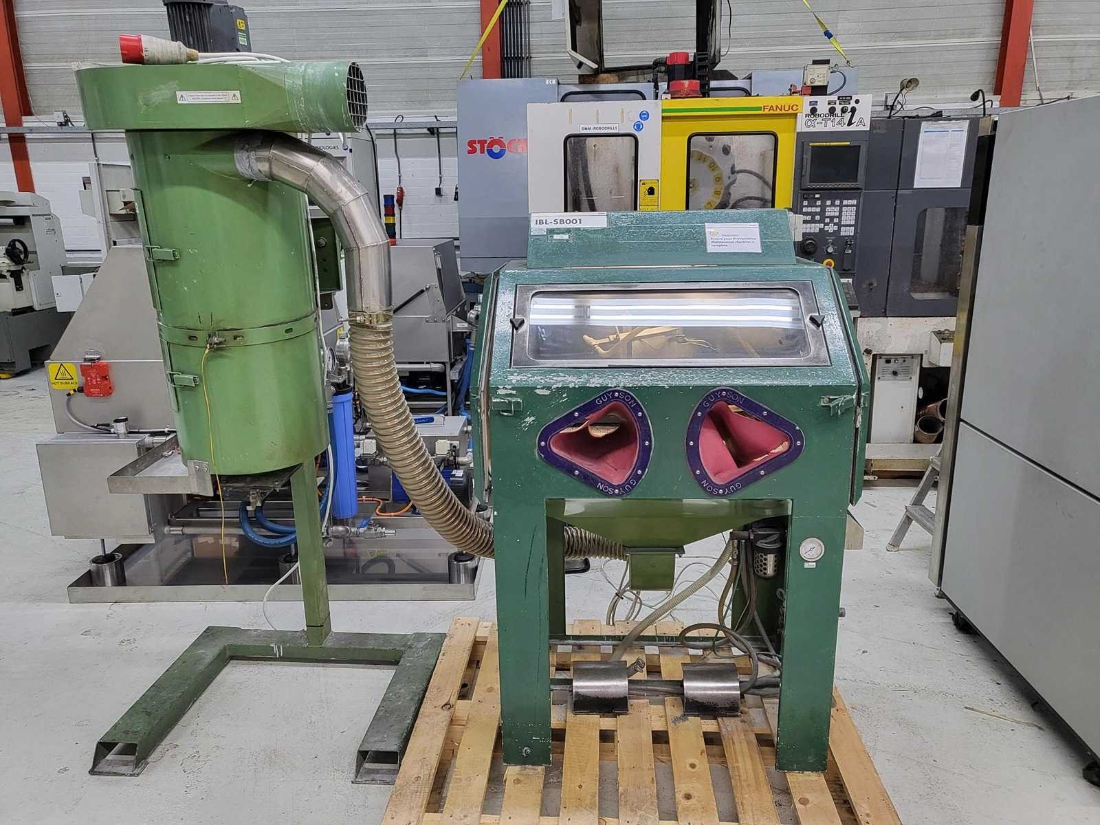Gyson straalcabine met afzuiging Merk: Guyson Aansluiting: 220V Machinegewicht: 250kg Afmeting l: 2000mm Afmeting b: 1000mm Afmeting h: 2000mm Leveringsvoorwaarden: Geladen op vrachtwagen