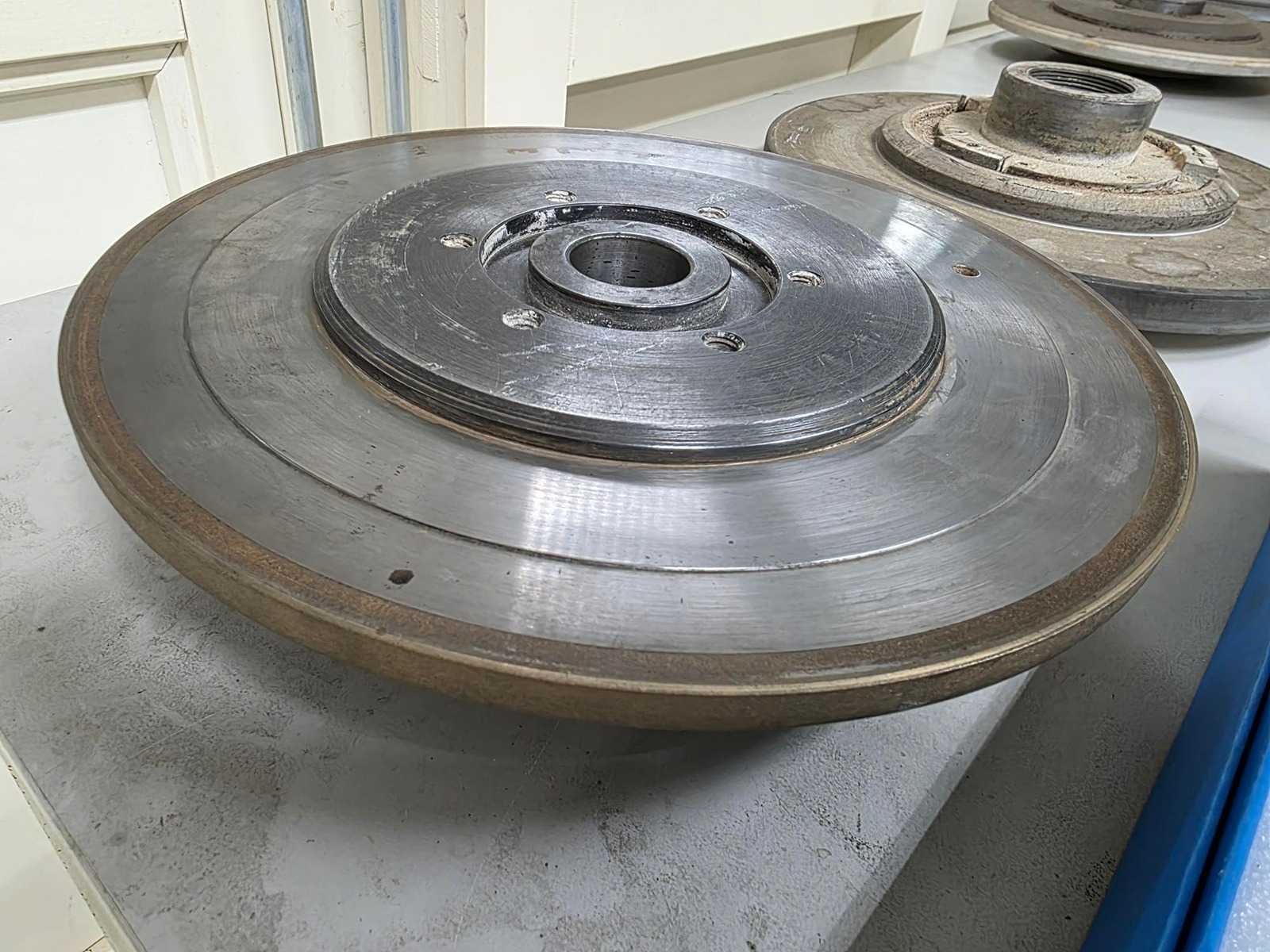 Diverse CBN slijpschijven 1x rond 300 mm x 10 mm incl. flens 1x rond 300 mm x 15 mm incl. flens 1x rond 300 mm x 19 mm incl. flens 1x rond 250 mm/ rond 127 mm x 2mm nieuw ongebruikt indien gewenst, kunnen de spullen binnen europa verzonden worden tegen: 50 euro inpakkosten+ geldende verzendkosten Merk: Barhausen Type: cbn Leveringsvoorwaarden: Niet gefundeerd - onverpakt