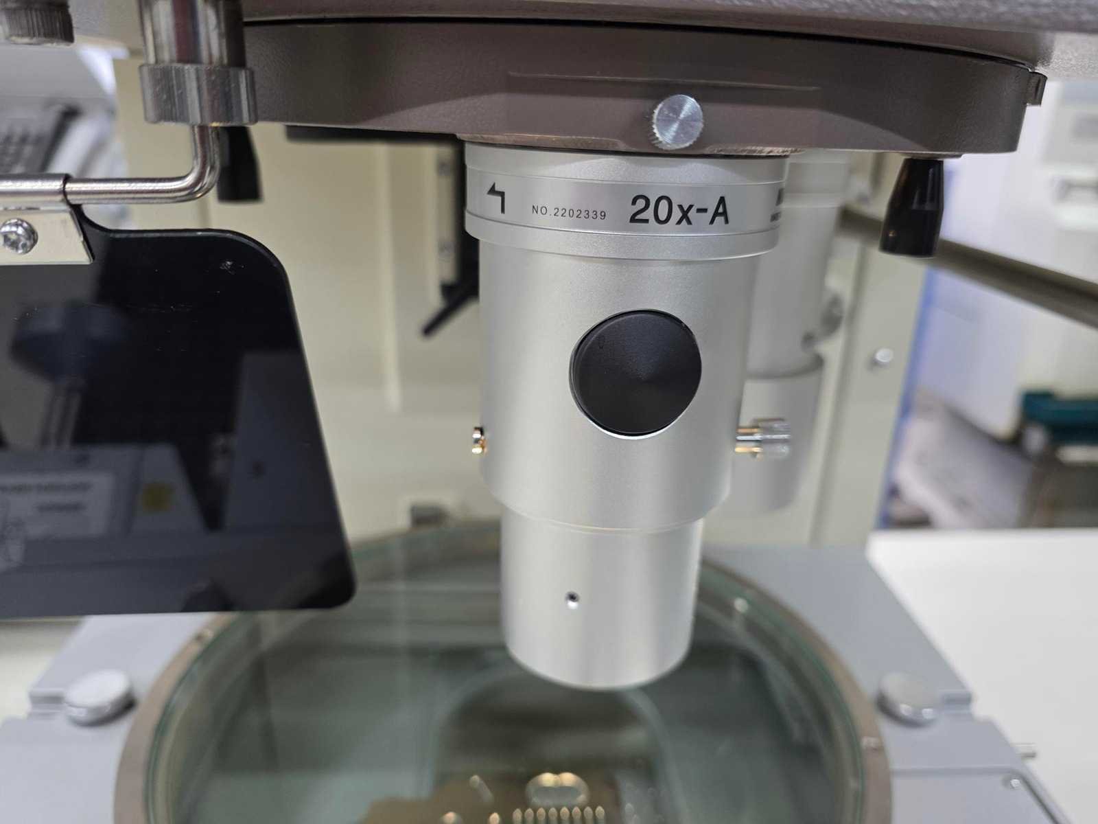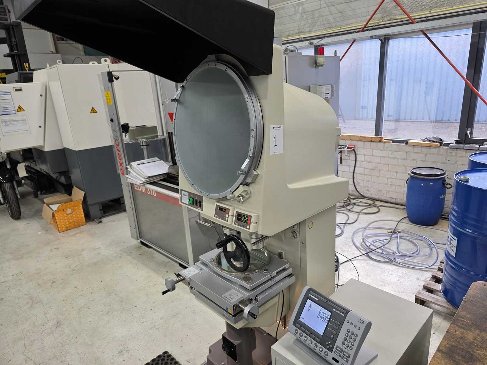 Nikon V-20 B profielprojector NIEUW, nooit gebruikt ( nieuwprijs 52.400 euro) x,y 250 x 150 mm beeldscherm rond 500 mm 10 x en 20 x vergroting licht door en licht op het product heidenhain quadra chek digitale uitlezing met diverse meet/ en rekenfunties nikon draaitafel om het product uit te lijnen documentatie Merk: Nikon Type: V-20B Serienummer: 2502391 Aansluiting: 220V Eigen gewicht: 300kg Afmeting l: 1800mm Afmeting b: 1000mm Afmeting h: 2000mm Leveringsvoorwaarden: Geladen op vrachtwagen