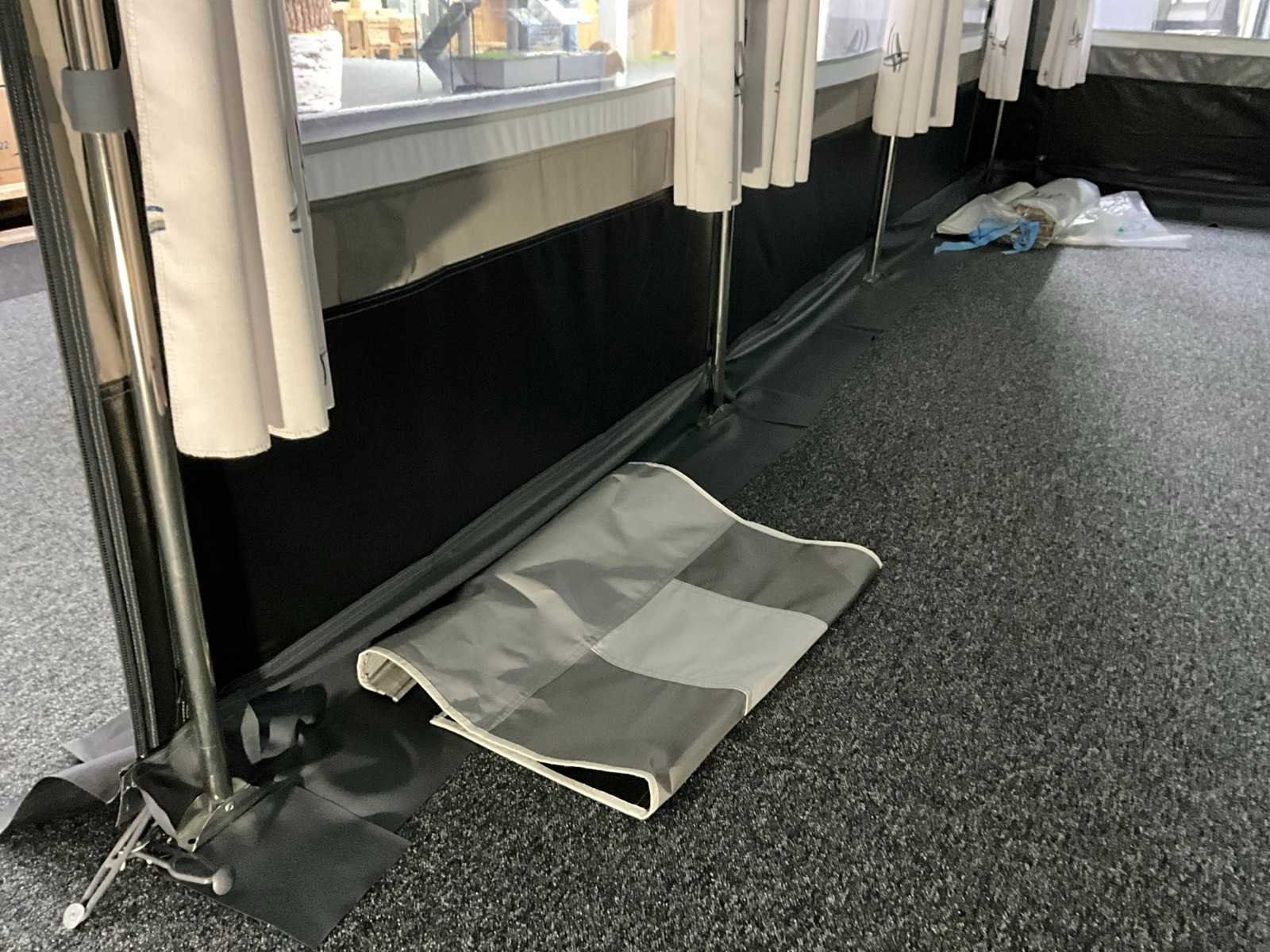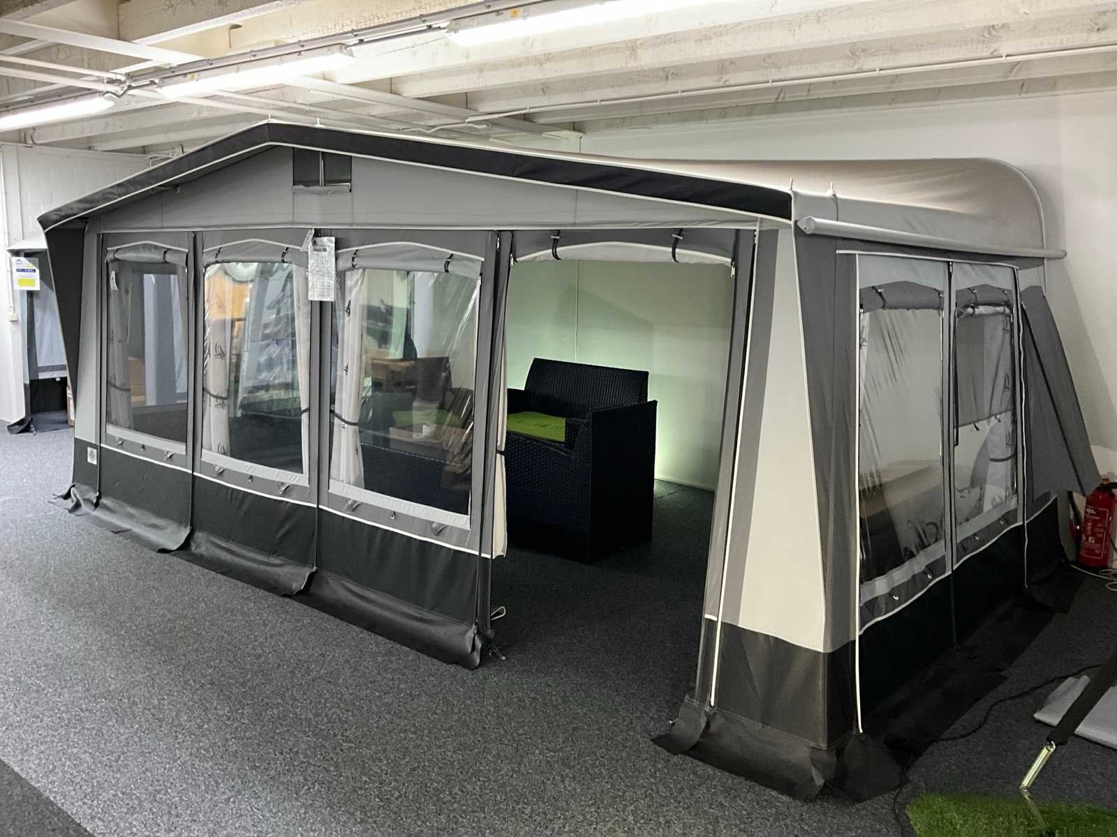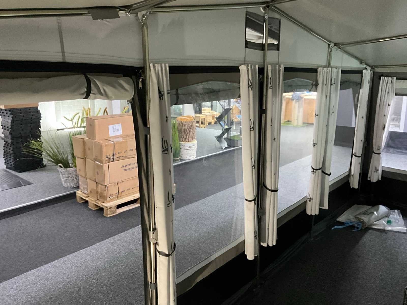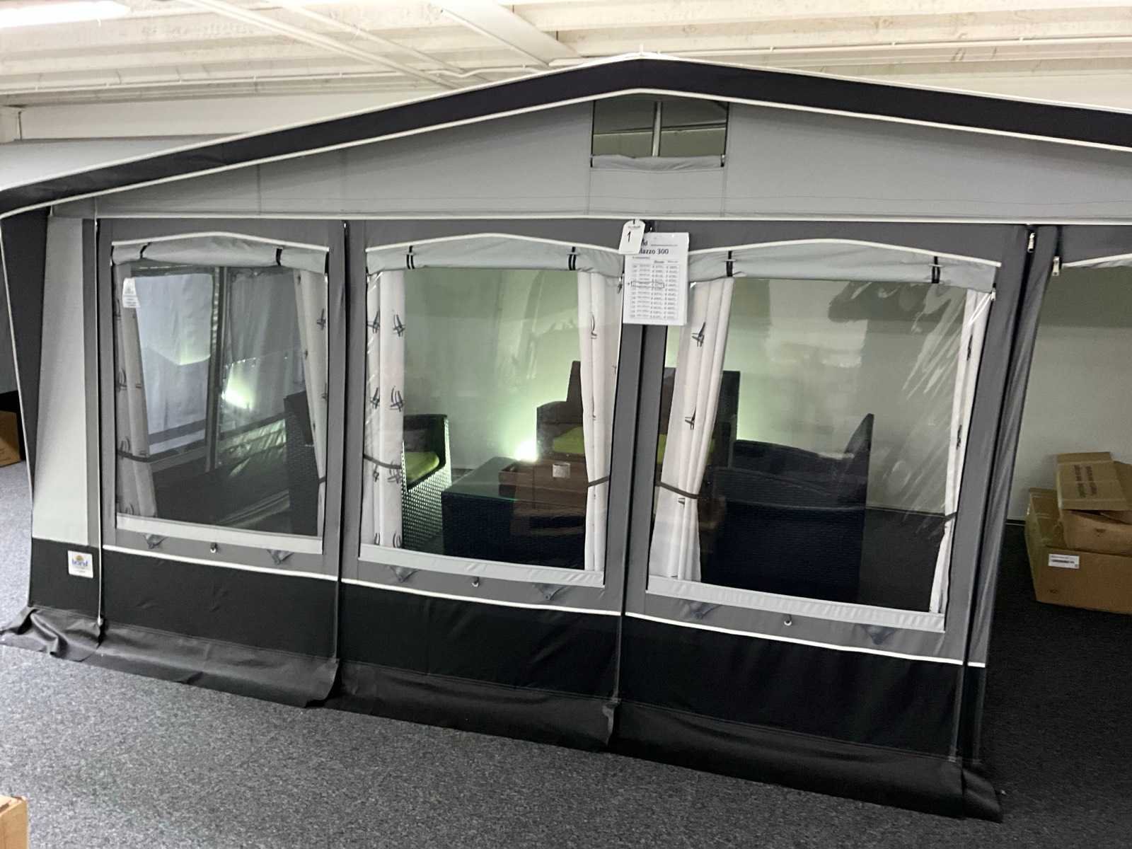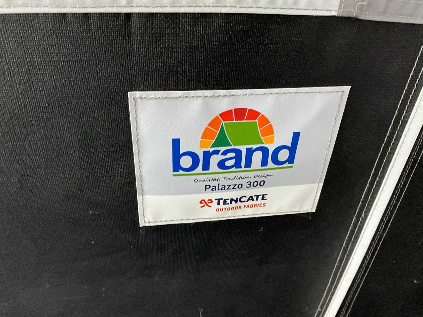 Foto’s ter referentie, tent ongebruikt in doos. Transport maat: 120x50x50 cm. Omloopmaat: 21, 939-958 cm, voortentdiepte: 300 cm, dakmateriaal: dubbelzijdig PVC 550 gr/m2, wandmateriaal: TenCate AllSeason / PVC, frame: staal Ø 28x1 mm Merk: Brand Product type: Palazzo 300 Lengte: 330cm Breedte: 540cm Hoogte: 248cm
