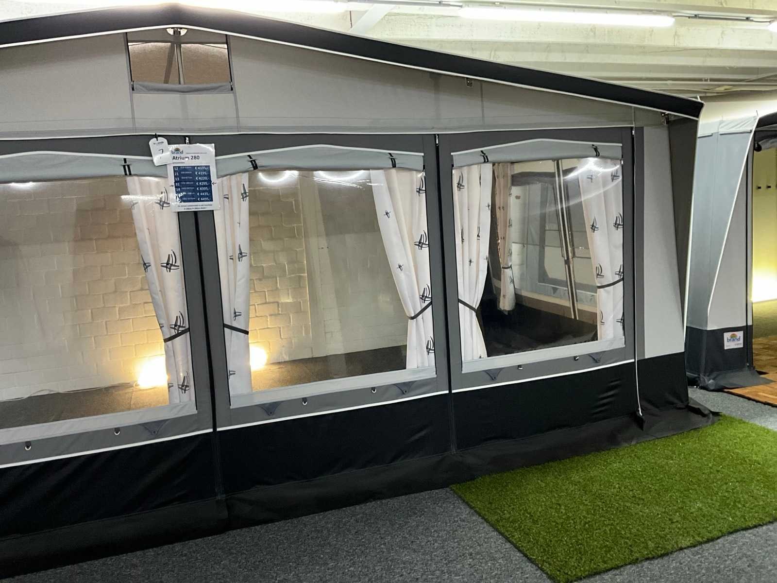 Omloopmaat: 31, 978-1001 cm, voortentdiepte: 280 cm, dakmateriaal: TenCate Residential 260 grams, wandmateriaal: TenCate AllSeason 240 grams, frame: Staal Ø 28x1 mm, inclusief kunstgras. Merk: Brand Product type: Atrium 280 Lengte: 310cm Breedte: 580cm Hoogte: 253cm