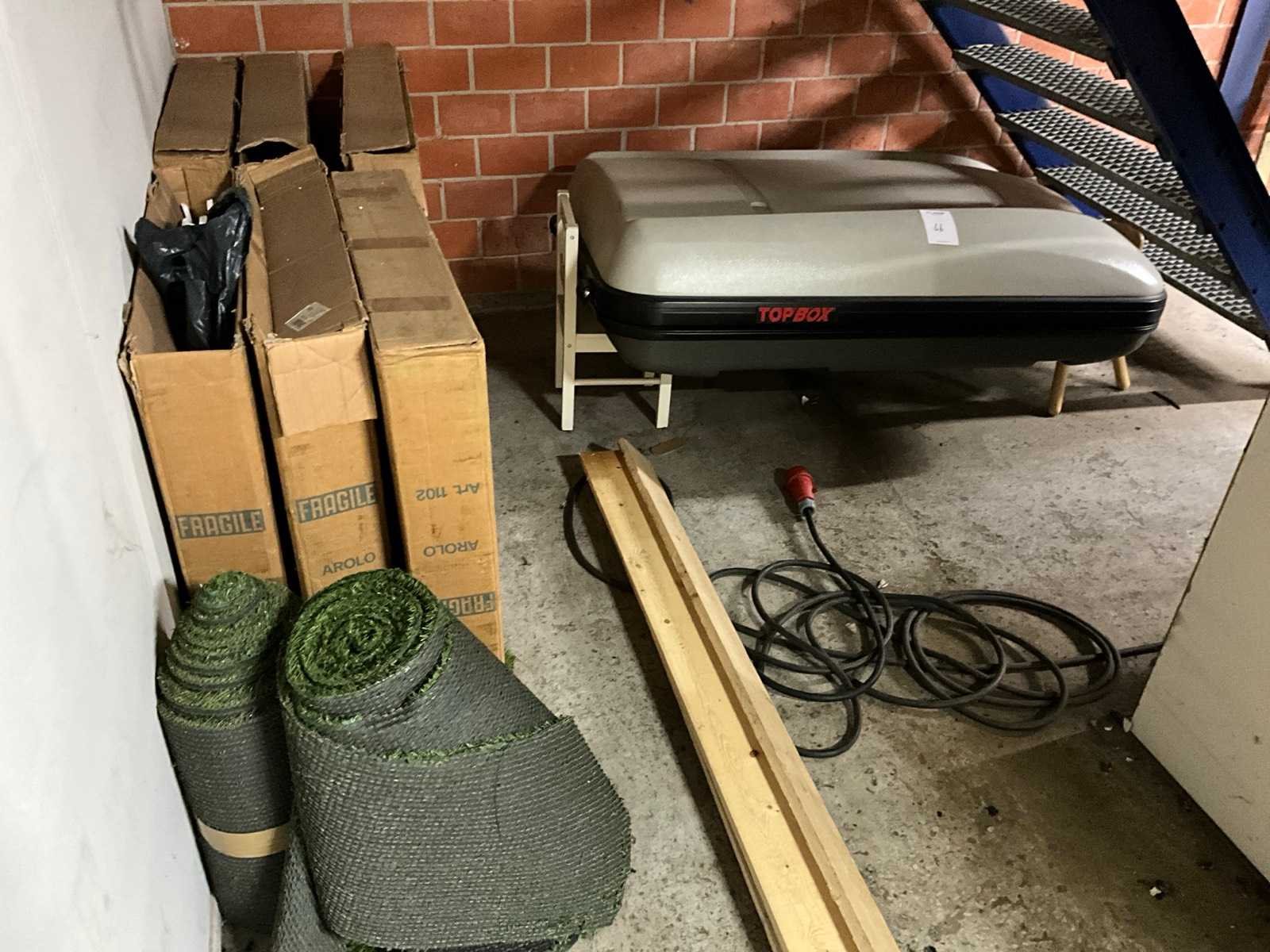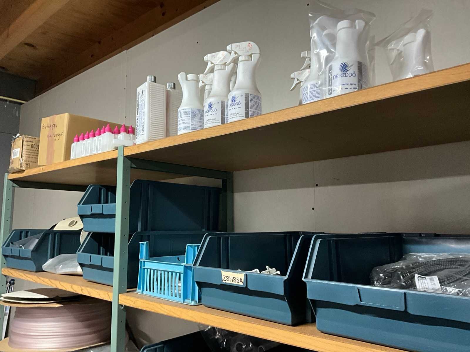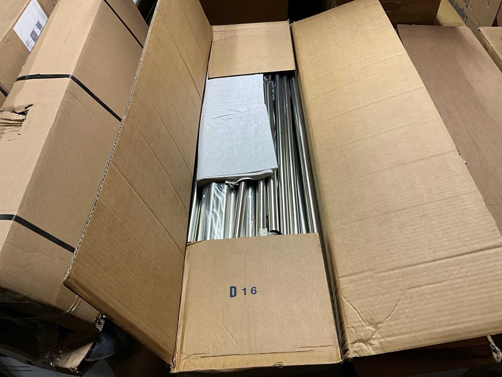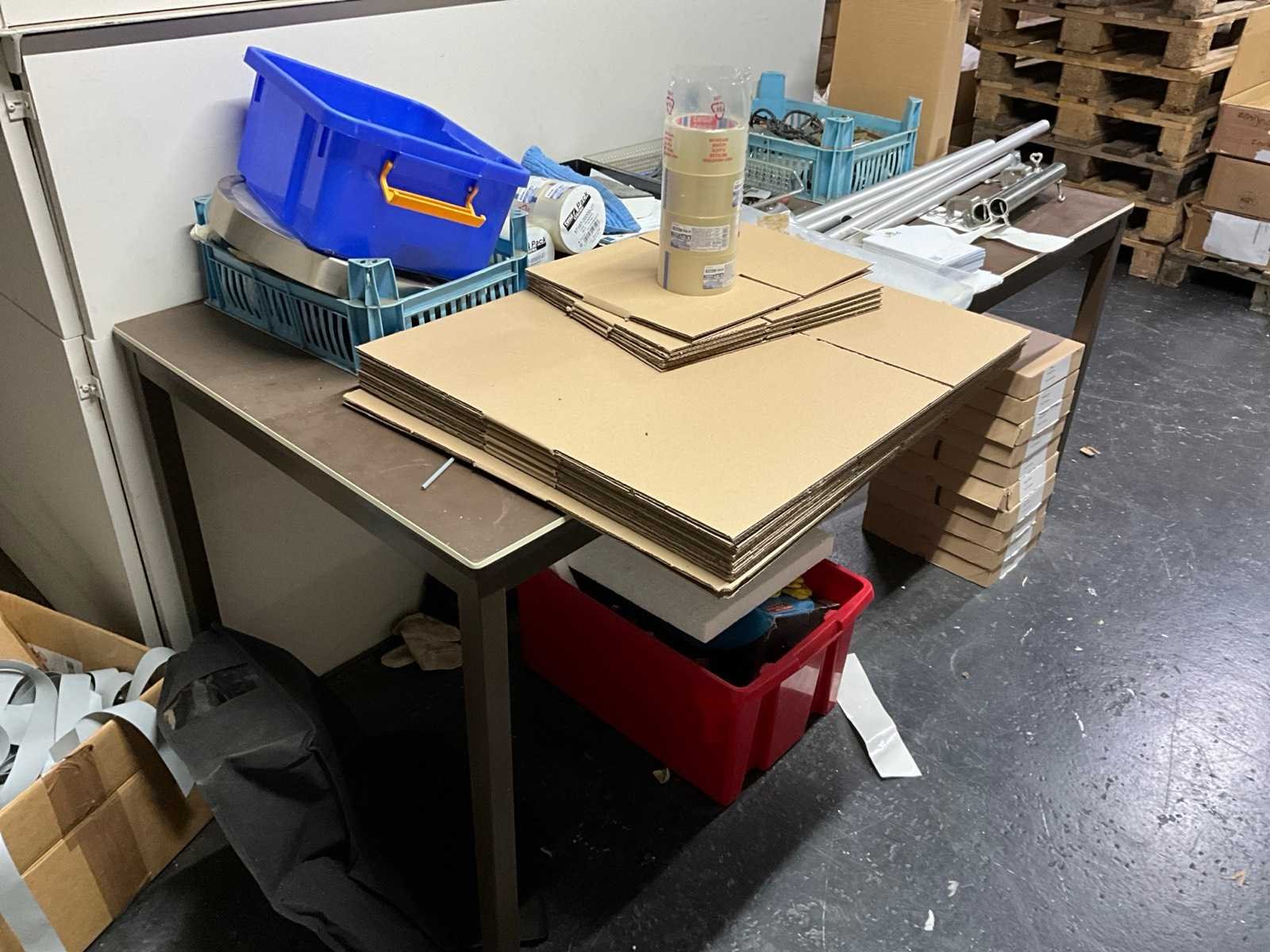 Betreft inhoud opslag, waaronder: 4x stelling met inhoud, magazijnbakken, partij aluminium en stalen frame stangen en onderdelen, diverse (in)complete voortent frames, diverse (in)complete tenten zonder frame, etc