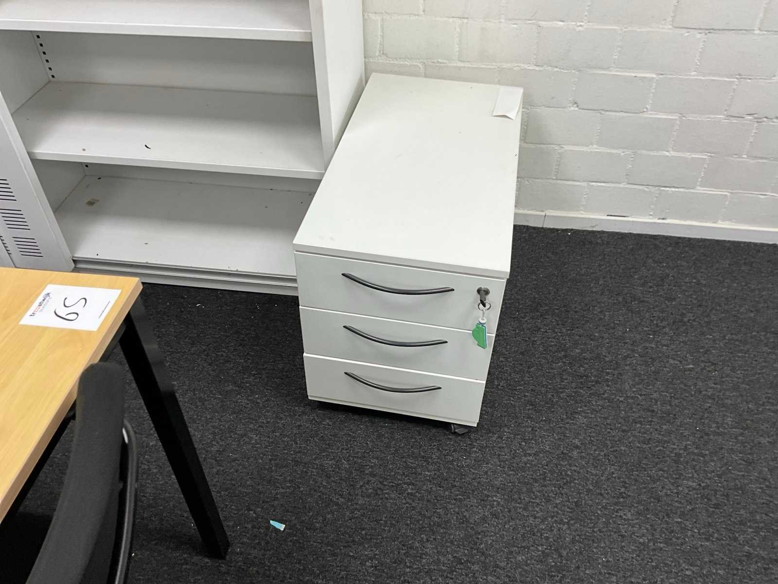 Bestaande uit vergadertafel, 3x stoel, kapstok, 2x whiteboard, dossierkast en ladeblok