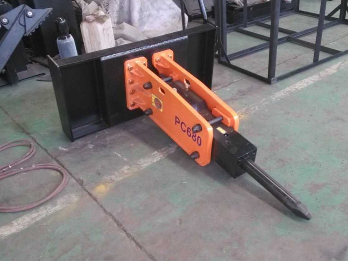 Voorzien van schranklader/“bobcat” opname-/aanbouwplaat; lengte 1719 mm; werkdruk 50-90 liter/min; werk kracht 120-170 kg/cm2; impact rate 400-800 bpm; beitel diameter 7,5 cm; 6-9 Ton; geleverd in stalen krat; ongebruikt Merk: Rhino-cross Type: Hydraulic Breaker Bouwjaar: 2025 Eigen gewicht: 375kg