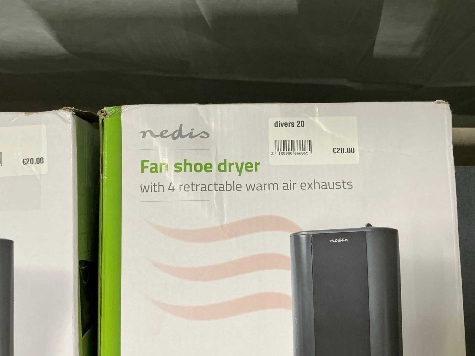 Het bezorggebied van de kavels is standaard gericht op Nederland en België. Indien u als koper gevestigd bent in een ander EU-land, kunt u tijdens het afrekenen een buitenlands afleveradres opgeven of het volgende adres invullen voor afhaling: Edisonstraat 23, 8861NA Harlingen, Nederland. Na afronding van de bestelling wordt contact met u opgenomen om de verzendmogelijkheden en de bijbehorende additionele kosten voor levering buiten Nederland en België te bespreken. De kavels worden vervolgens klaargezet voor afhaling op het opgegeven adres of tegen een meerprijs verzonden naar het buitenlandse afleveradres. Merk: Nedis Schoenendroger Model: HTSH10GY