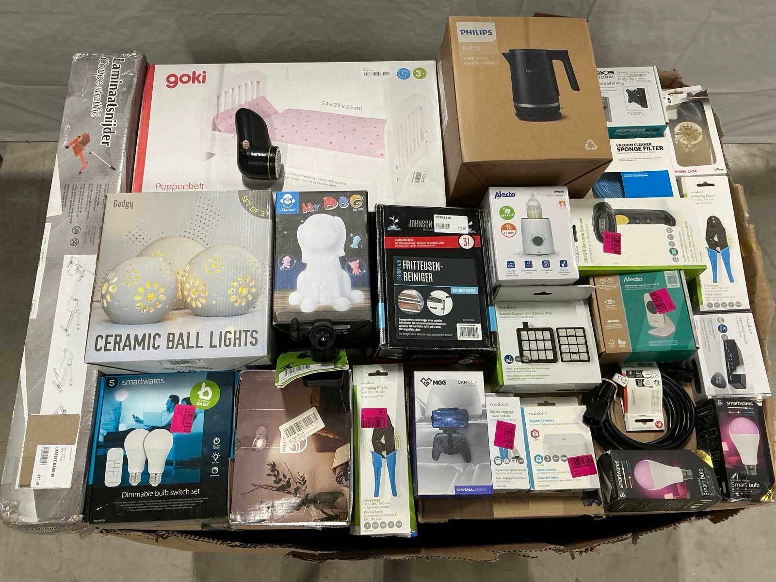 Dit betreft een partij retourgoederen van een grote online retailer. De goederen bestaan uit diverse productcategorieën. Ongecontroleerd: werking onbekend (mix van werkend, incompleet, beschadigd, te gebruiken voor onderdelen). Kom op de kijkdag om te om zo een goed beeld te krijgen van de reden van retour. Merk: Pallet