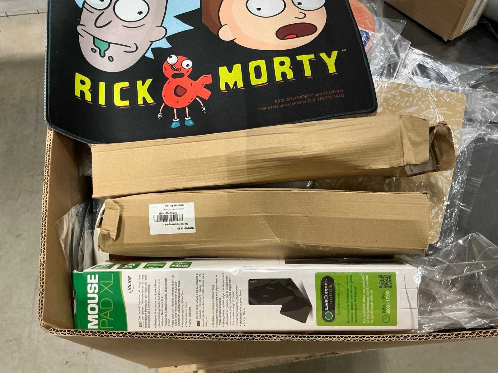 Dit betreft een partij retourgoederen van een grote online retailer. De goederen bestaan uit diverse muismatten. Ongecontroleerd: werking onbekend (mix van Nieuw, incompleet, beschadigd, te gebruiken voor onderdelen). Kom op de kijkdag om te om zo een goed beeld te krijgen van de reden van retour. Merk: Partij